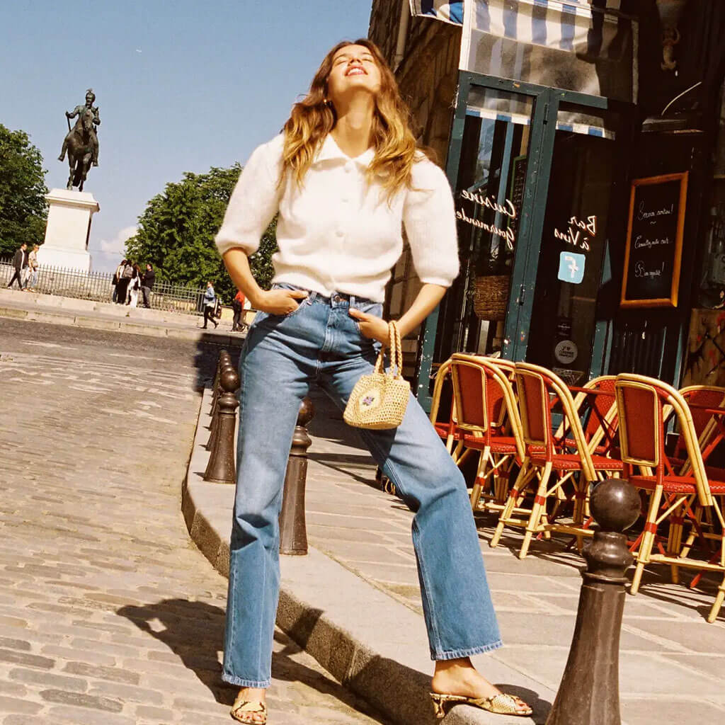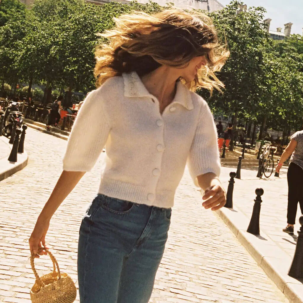Lace Panel Point Collar Puff Sleeve Button Down Cardigan - White