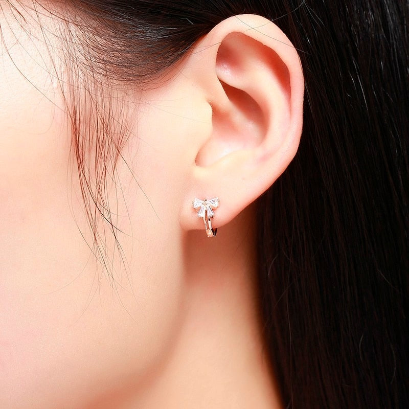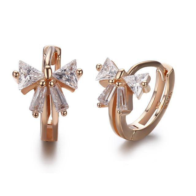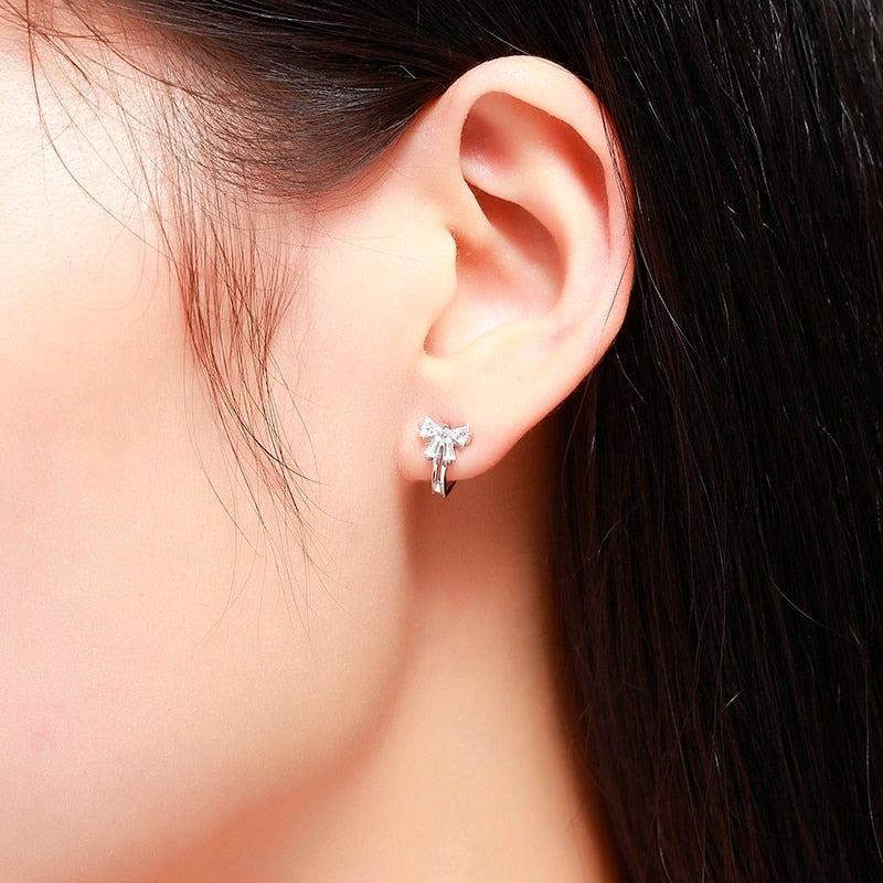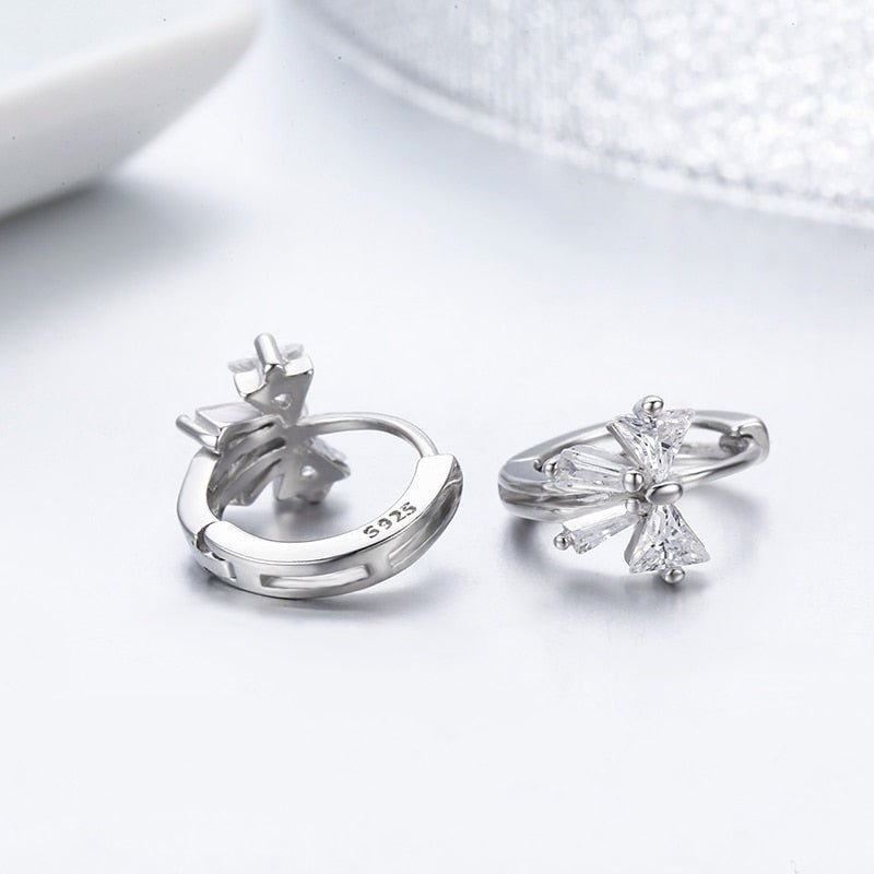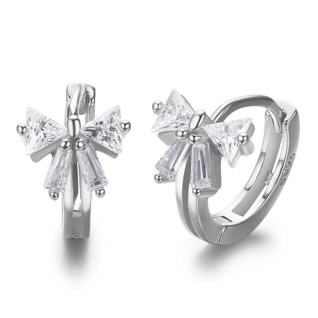 Cute Mini 925 Sterling Silver Bow CZ Circles Loops Hoop Earrings