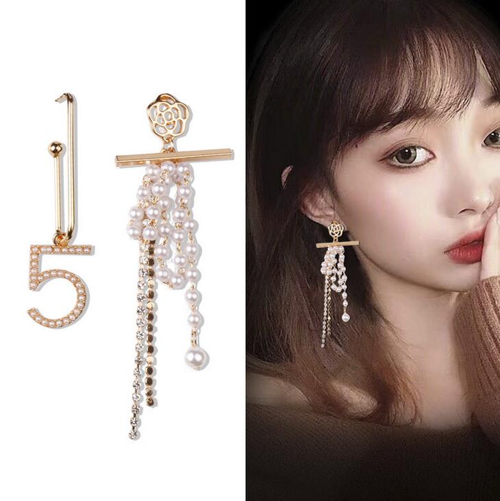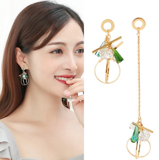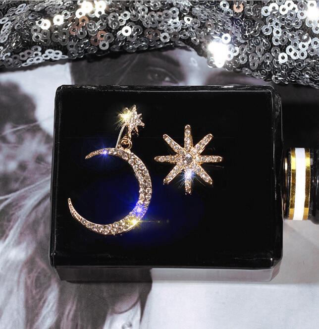 Korean Asymmetrical Star Moon Metal Drop Earrings