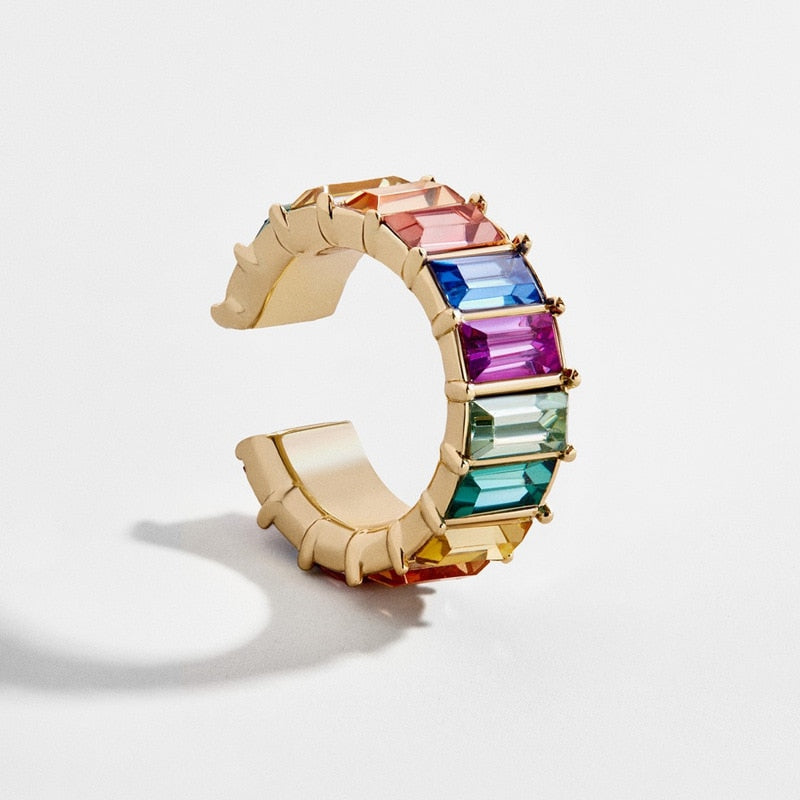 Lux Design C Shaped CZ Crystal Small Earcuffs Clip Earrings