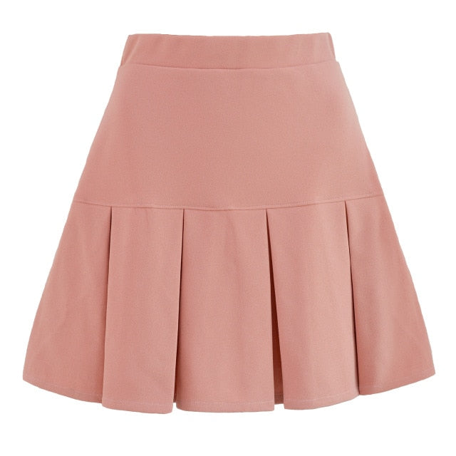 Casual Daily Look Mini Skirt with Solid Color, Pleated Silhouette, and Polyester Material