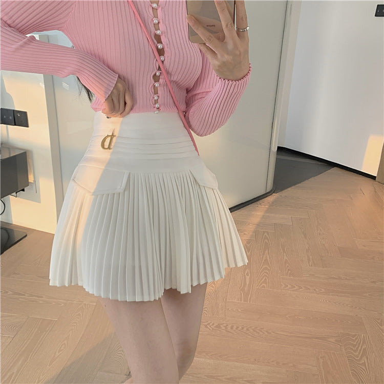 Cute and comfy, this skirt is perfect for any season. The high waist means you can pair it with any top, and the pleated style is flattering on any body type. The skirt is available in black and white.