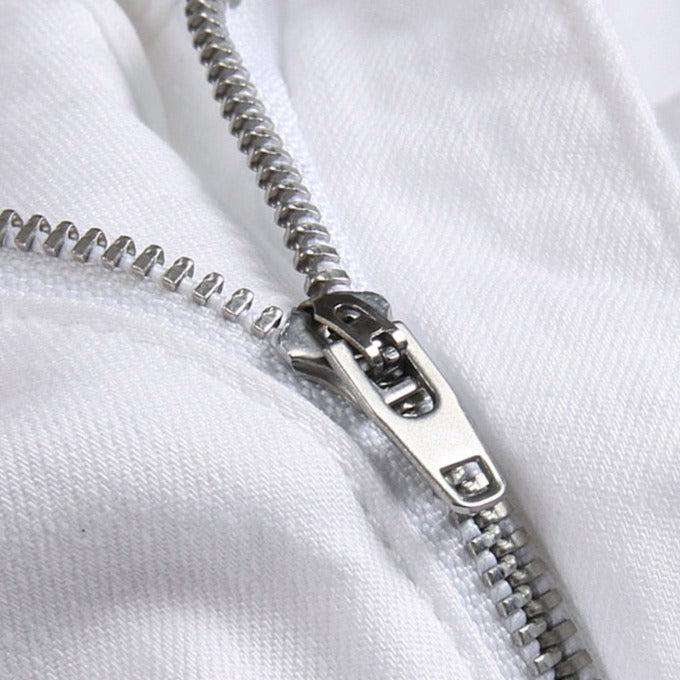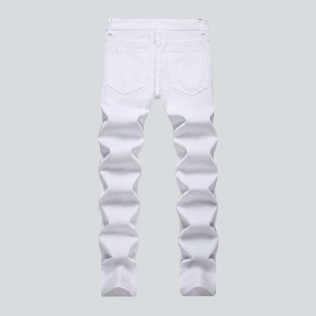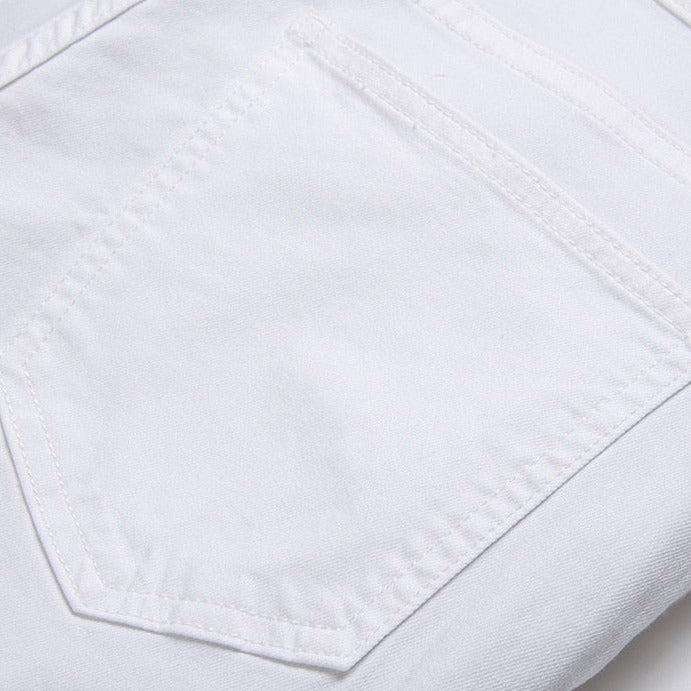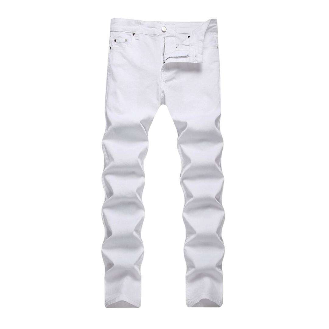 The 2023 Spring-Summer Collection from Brand Name introduces its white stretch jeans for men. the ultimate combination of casual trend and sophistication. These mid-waist jeans feature a slim fit. zipper & button closure. and a stretchy fabric for extra comfort and a flattering fit type.