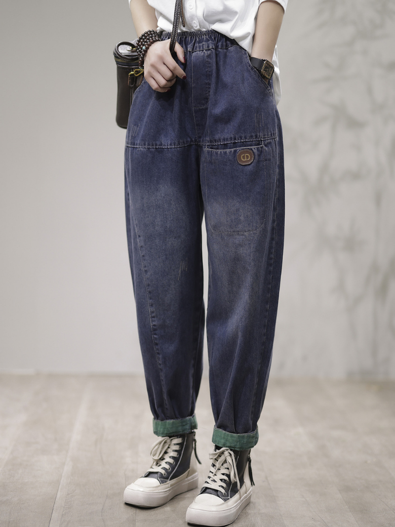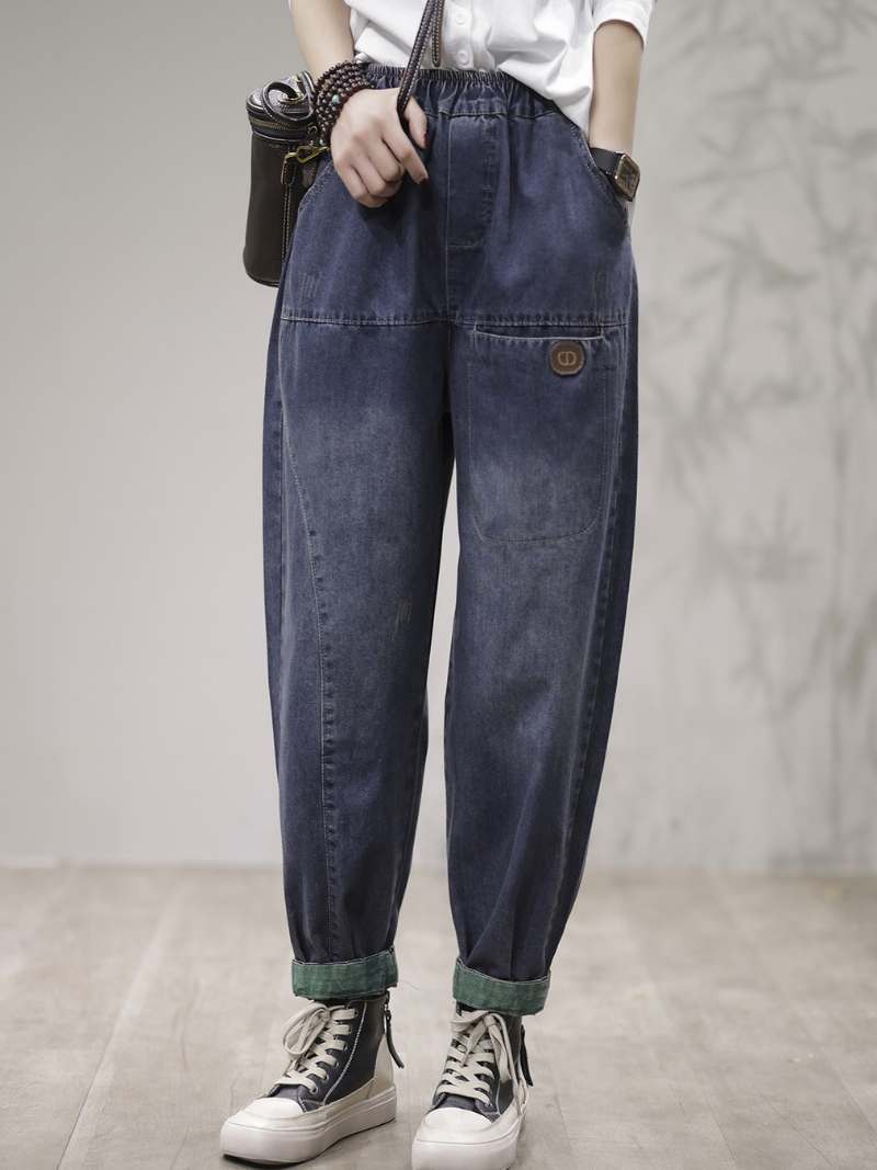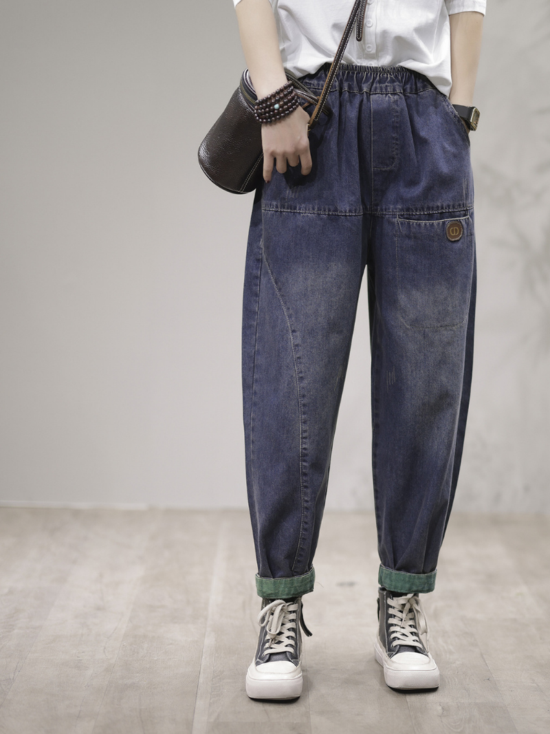 The Women's Spring and Autumn Casual Denim Loose patch Harem Bottom Pants are a must-have for your wardrobe this spring and autumn! These loose fit harem pants have a denim material. making them lightweight and comfortable to wear. They're also available in blue color. These jeans are perfect for casual days at home or at work. You can pair them with any top. shoes or sneakers that you like.