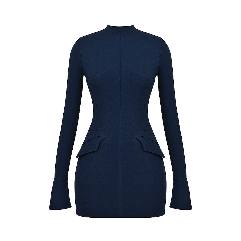 DARK BLUE Mini Dress with Pockets and Long SleeveS