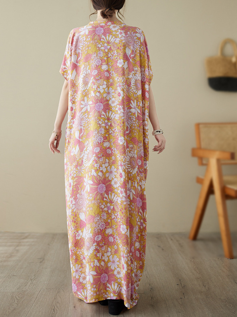 Dream Girl Cotton V-neck Floral Kaftan Dress