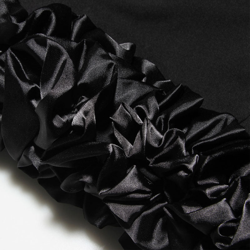 FeMinine Ruffled Trim Square Neck Suspender Strap Bodycon Mini Dress - Black