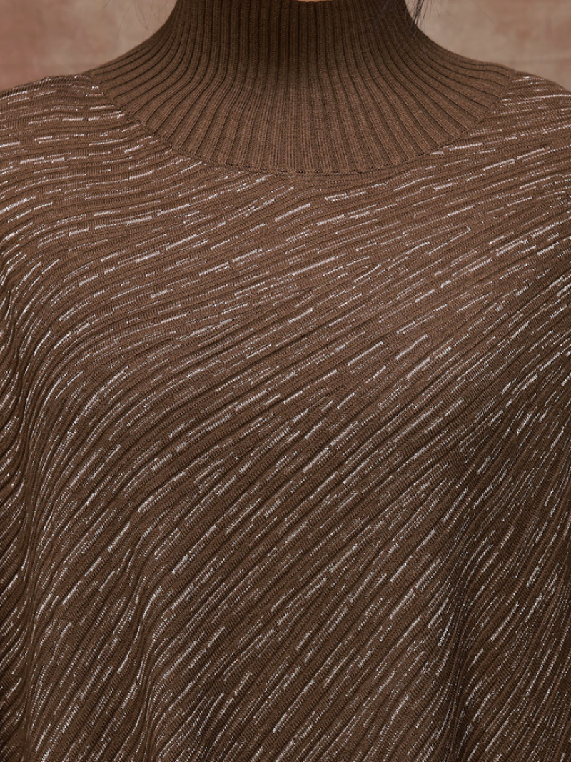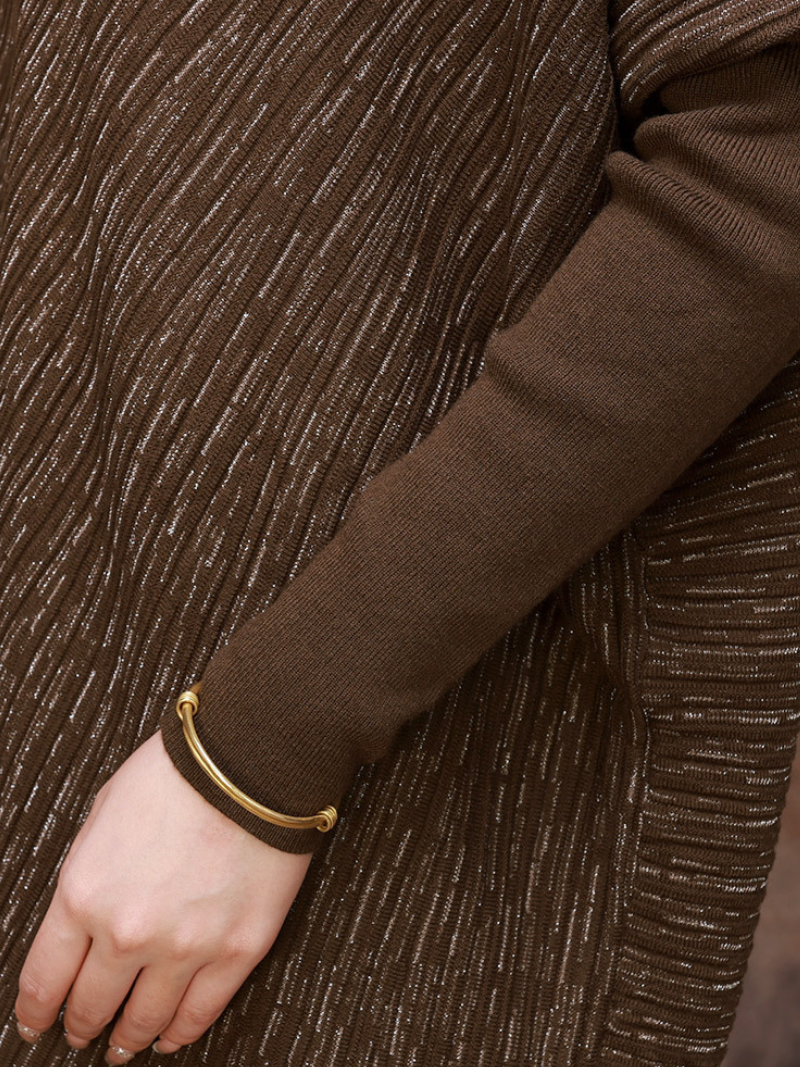 Plus Size Knitted Loose Bat Sleeve Stripe Midi Dress for Women