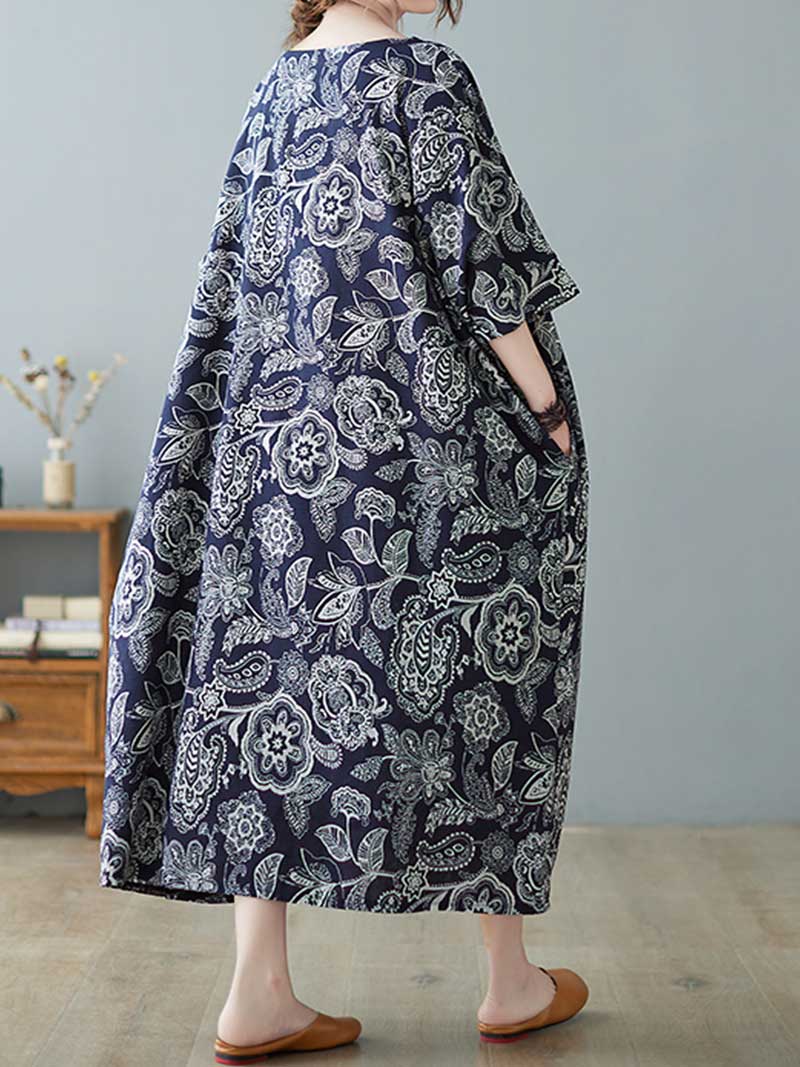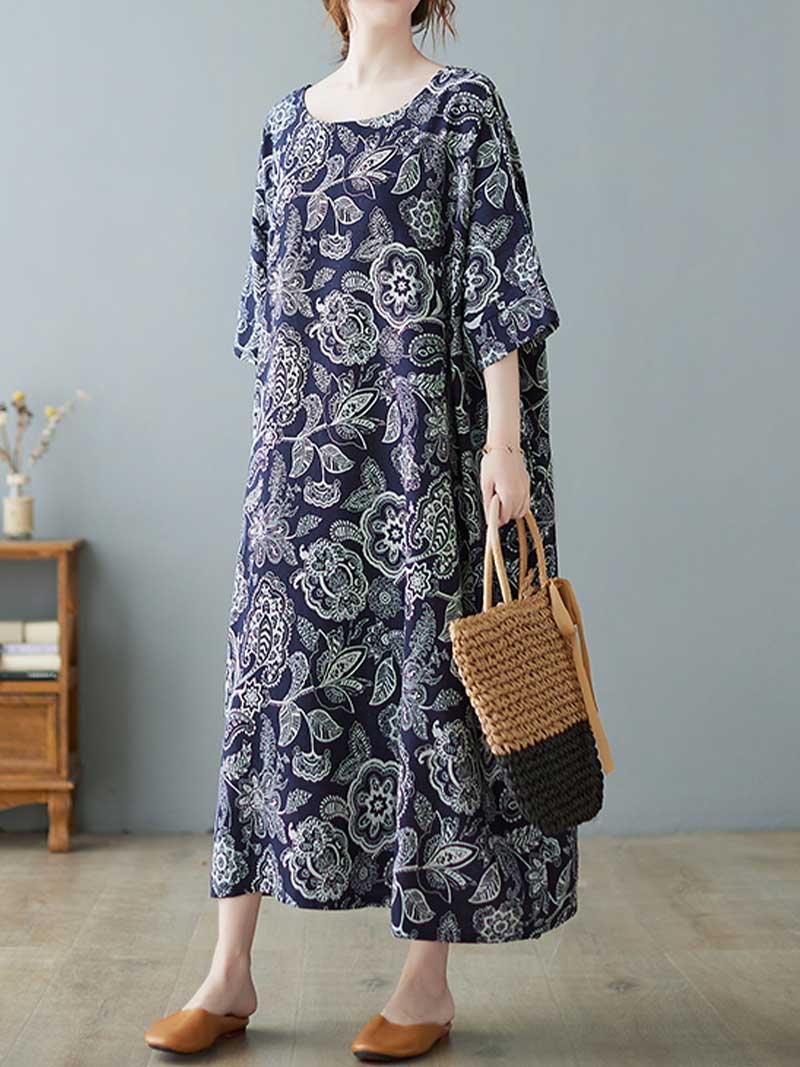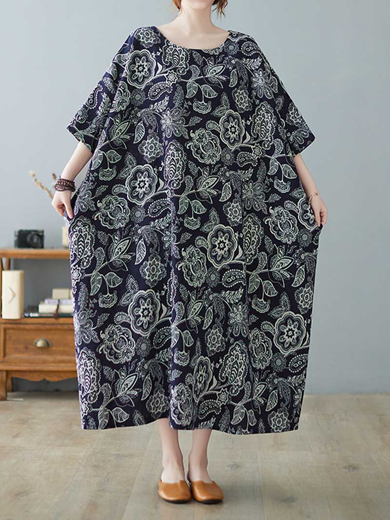 Are you looking for a pretty printed dress that you can wear on multiple occasions? Then you will love the Seeing Your Dream Printed Midi Dress! Made from a cotton blend. this dreamy dress is decorated with a floral pattern and has short sleeves. It also has a loose waist and comes in a beautiful navy-blue color. You can wear this dress in summer. spring. or autumn. and it will always look chic. Plus. it comes with a lining for extra comfort.