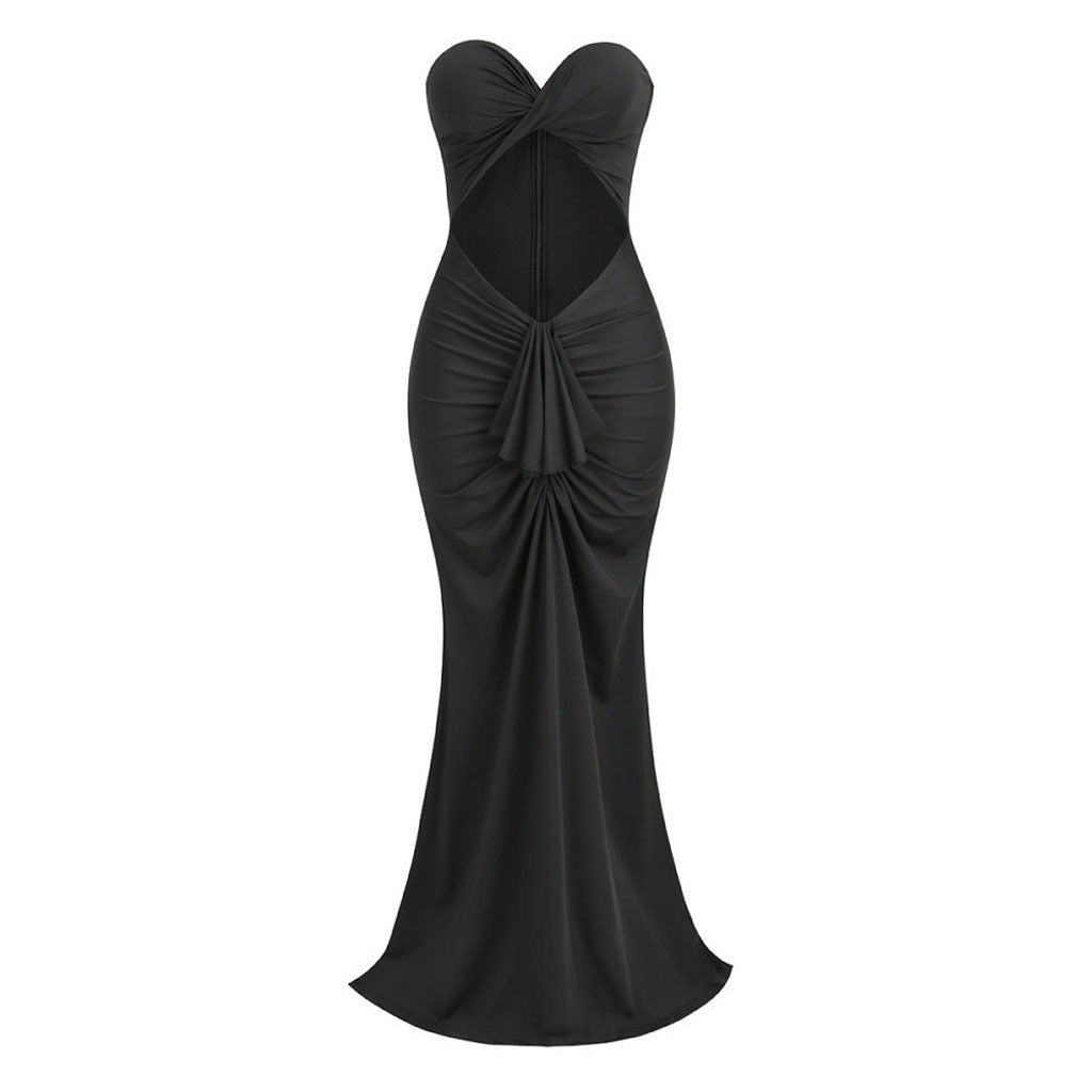 Sexy Twisted Sweetheart Ruched Draped Ruffle CutOut Maxi Mermaid Evening Dress