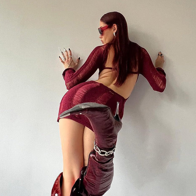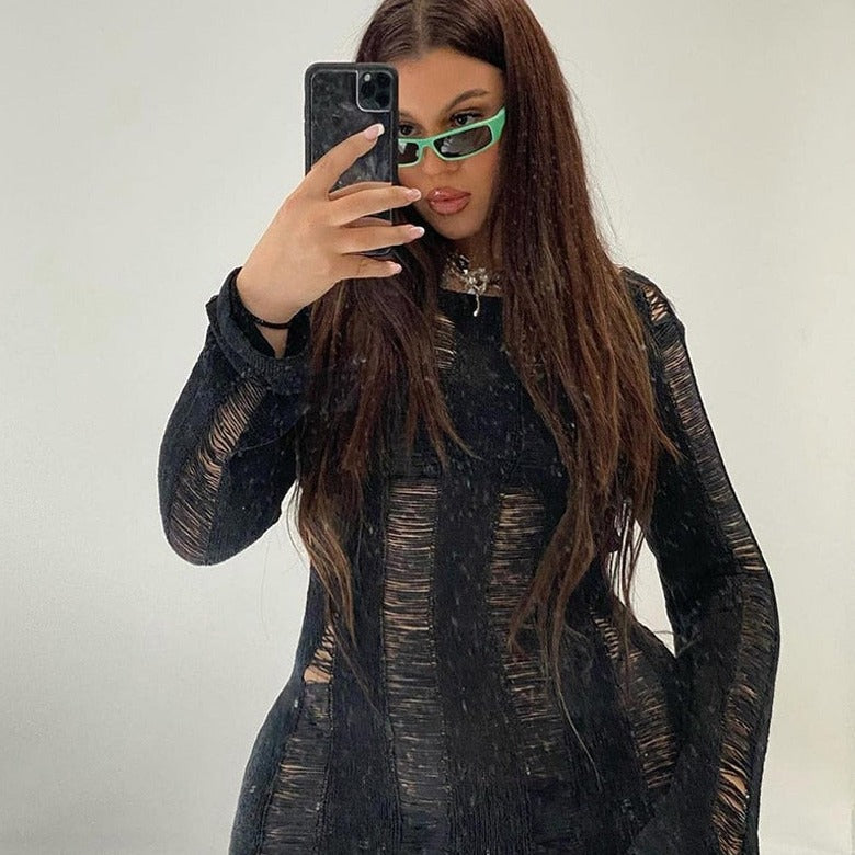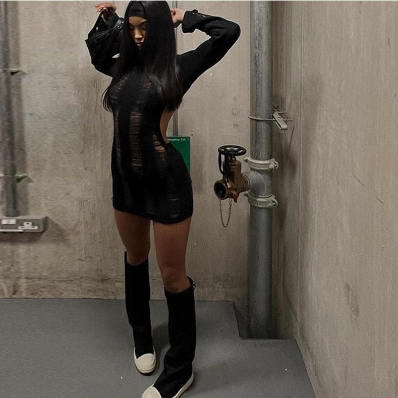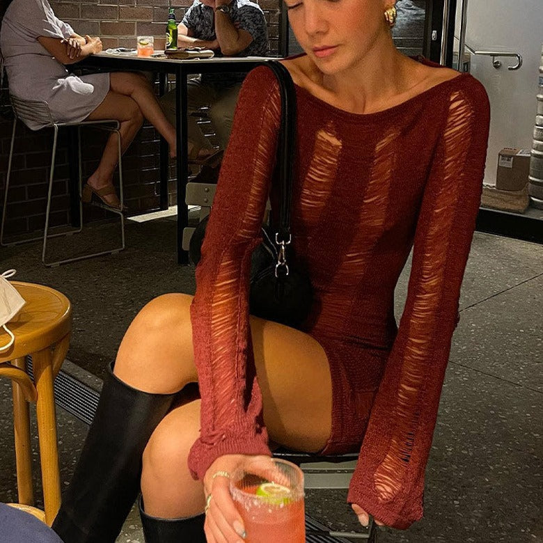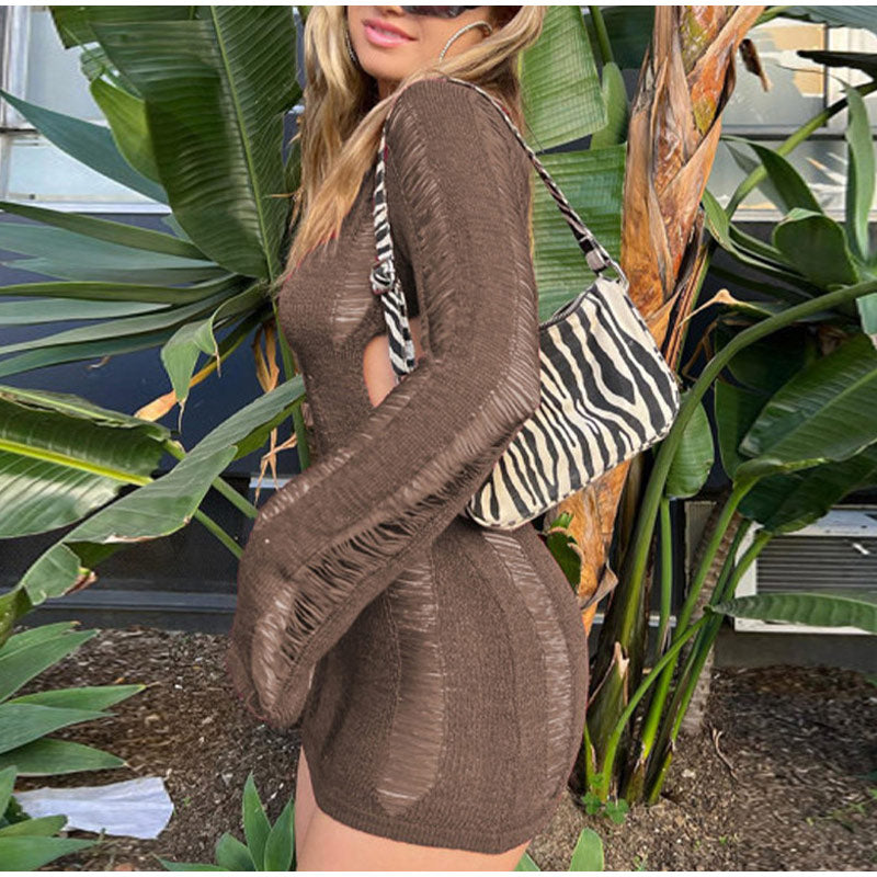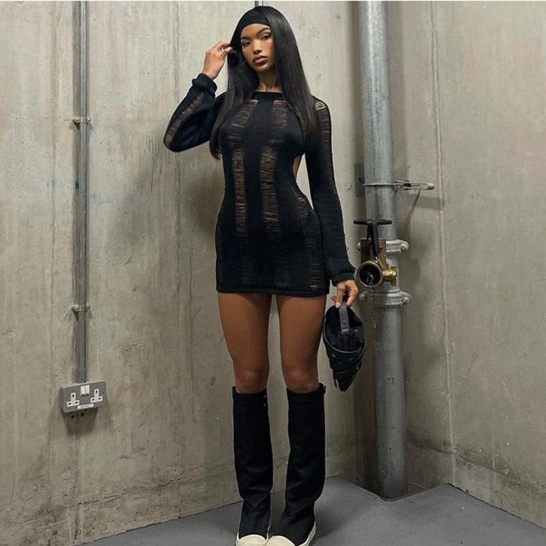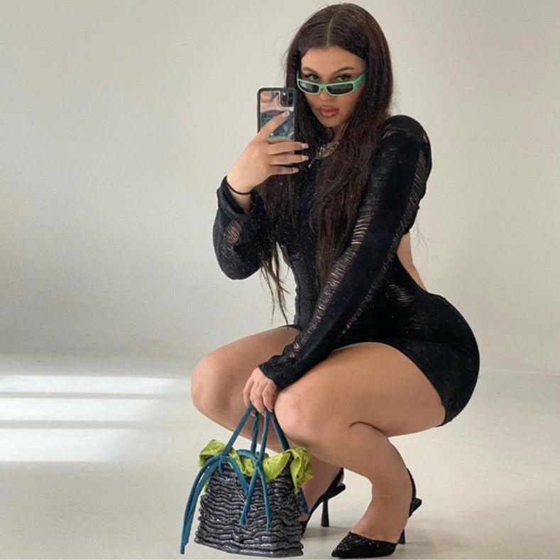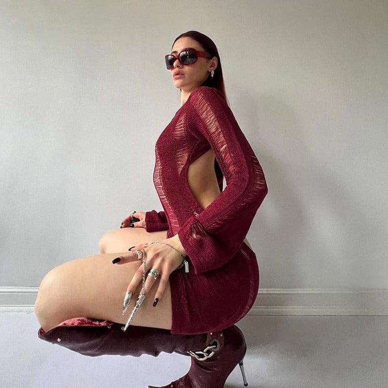 SUZUME TASSEL CUT Out LongSleeve Mini Dress