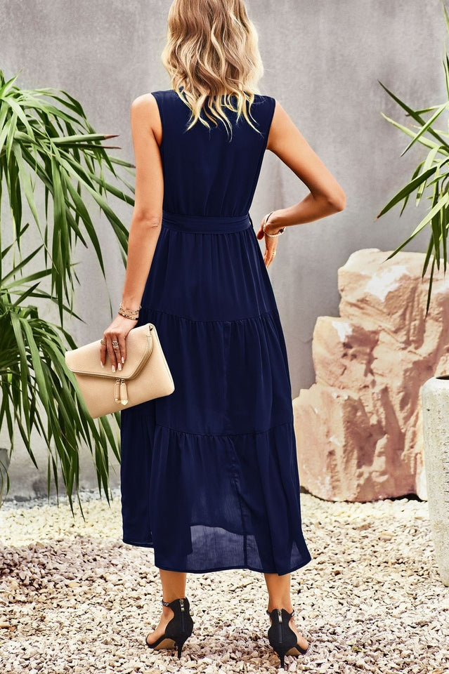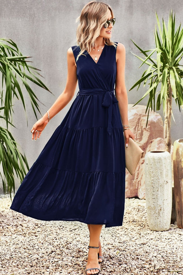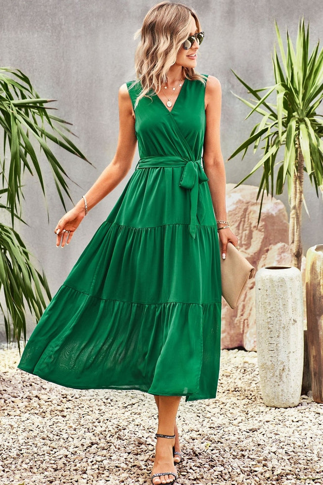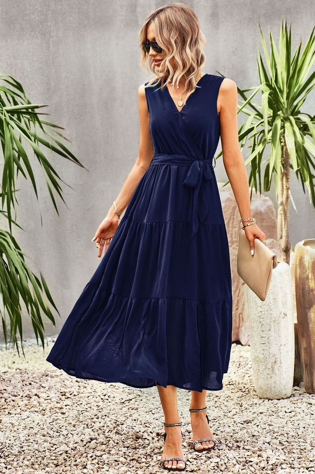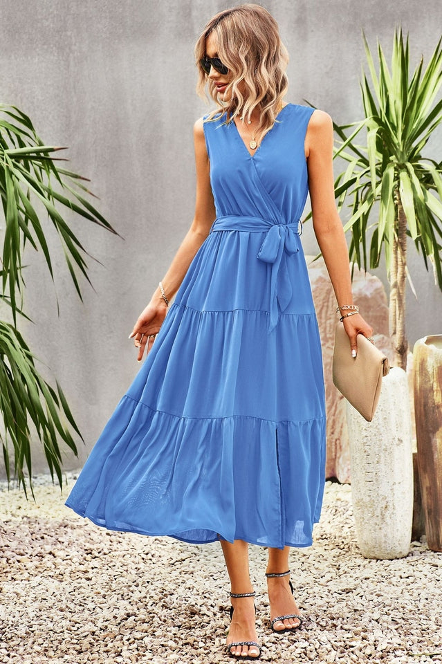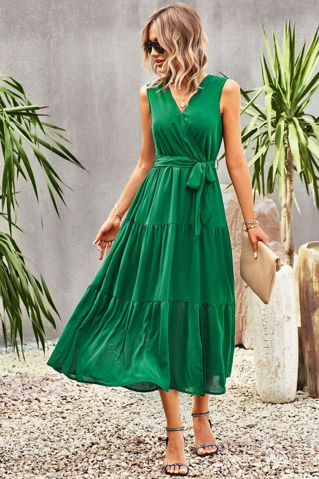Tie-Waist Side Split Surplice Dress