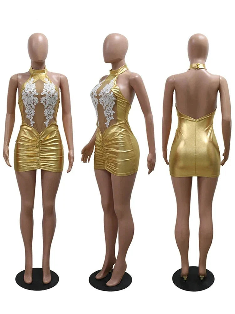 Experience endless style with our mini dress. This must-have dress features a unique patchwork design, made of luxurious polyester and delicate mesh. Don't just wear a dress, make a statement with our mini dress.