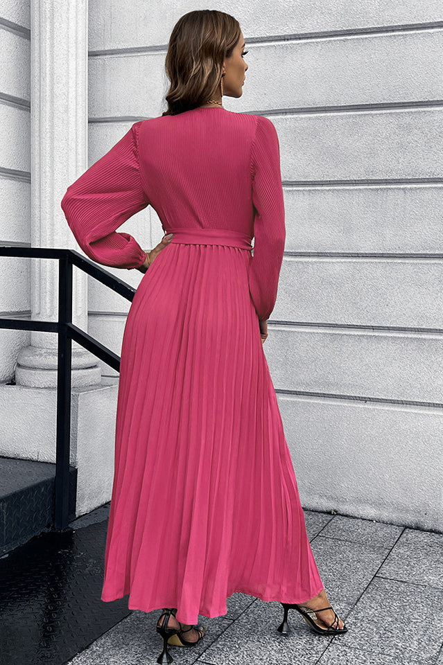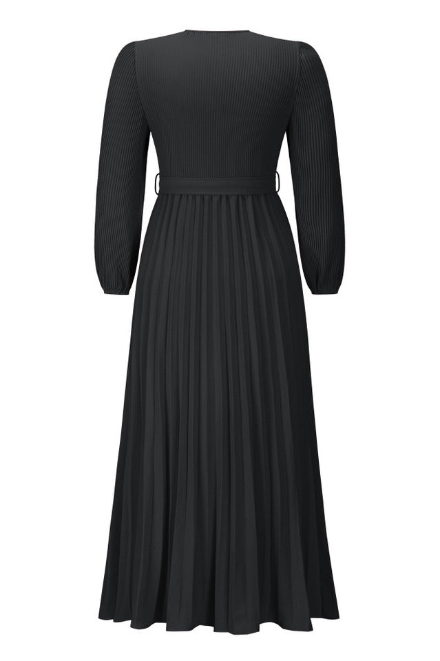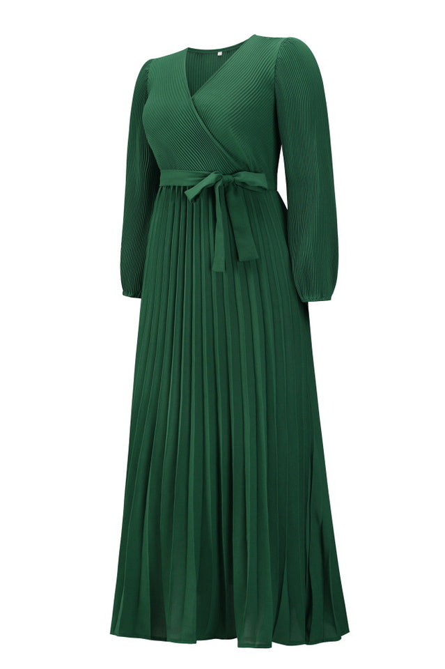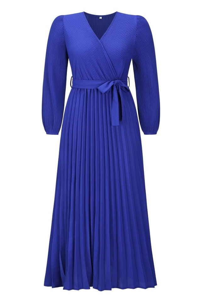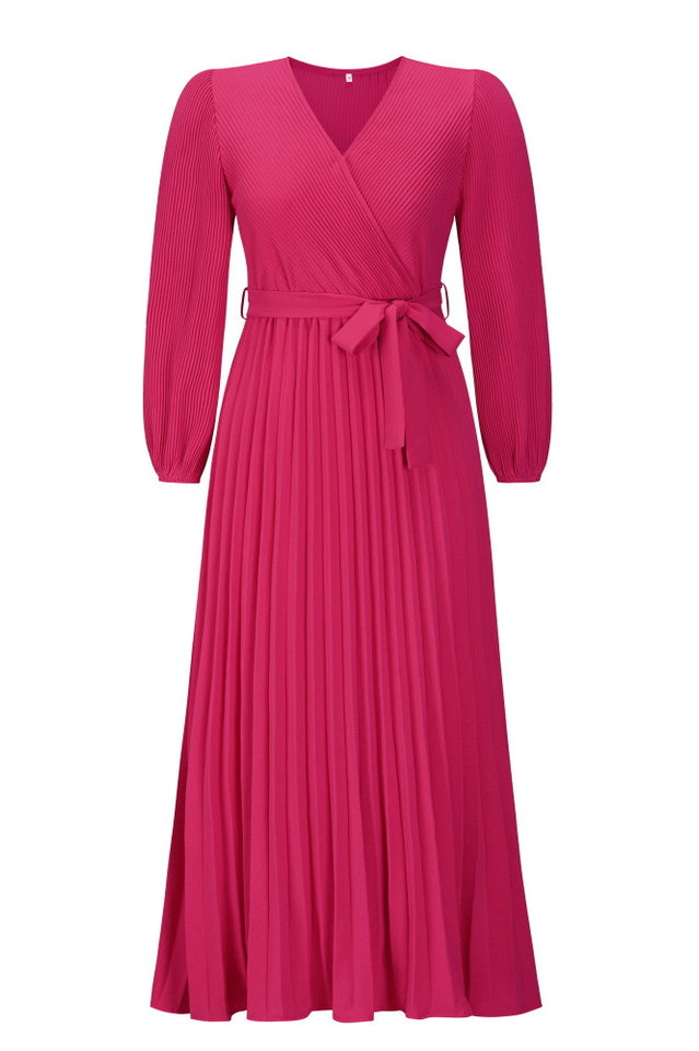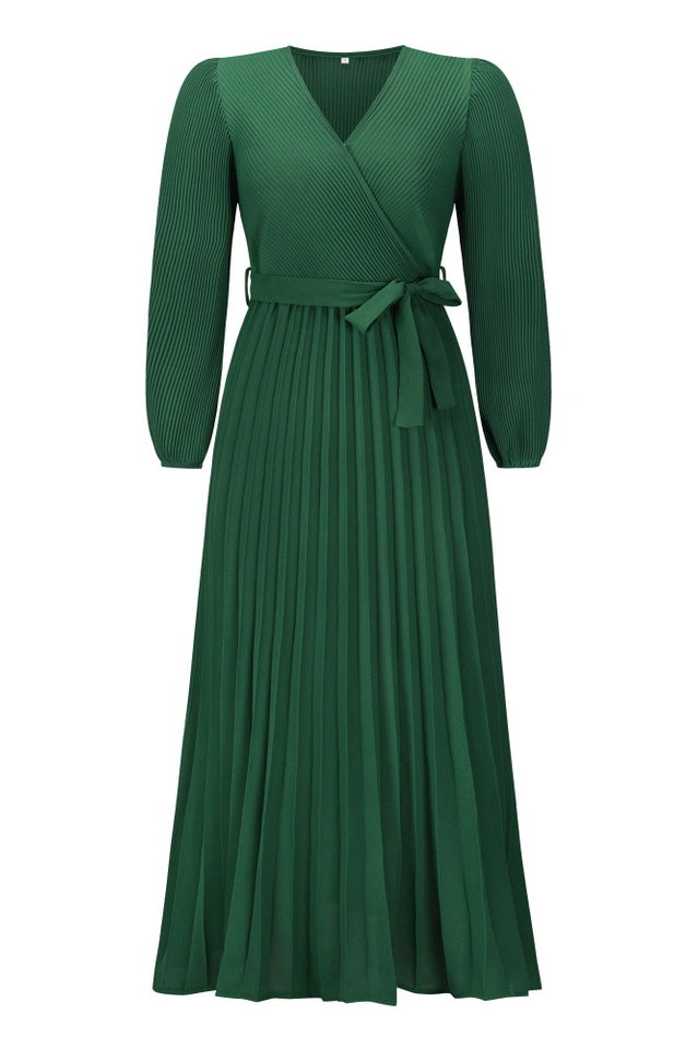V Neck Swing Pleated Dress