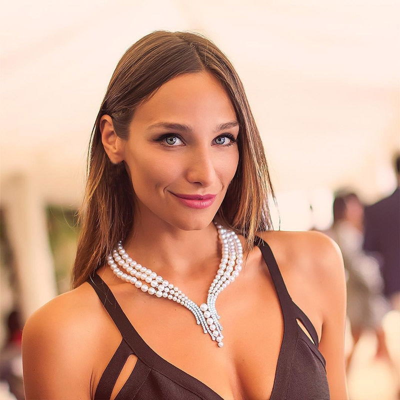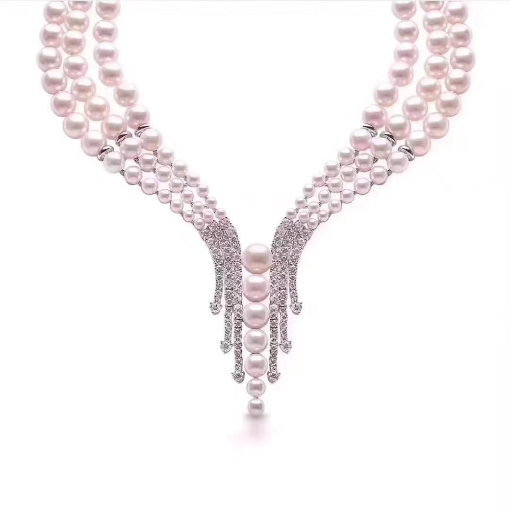 Multi-Layered Style Copper Necklace with Simulated Pearls