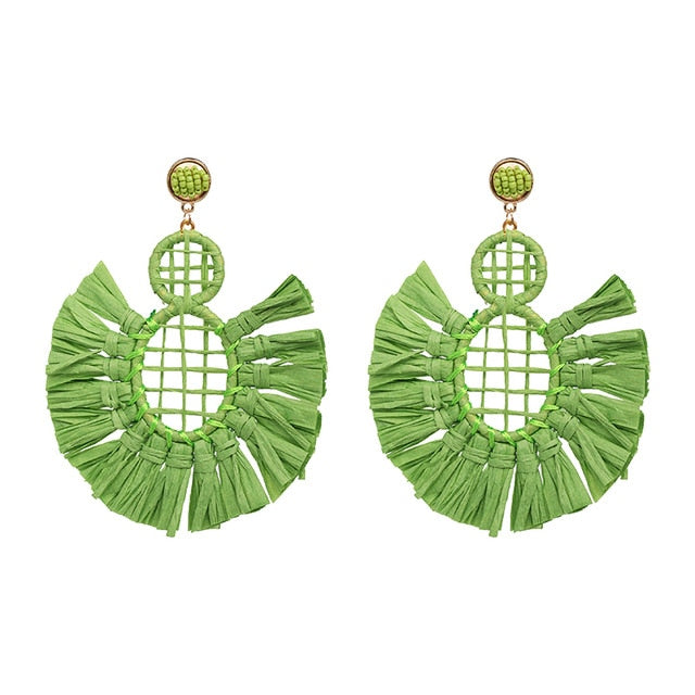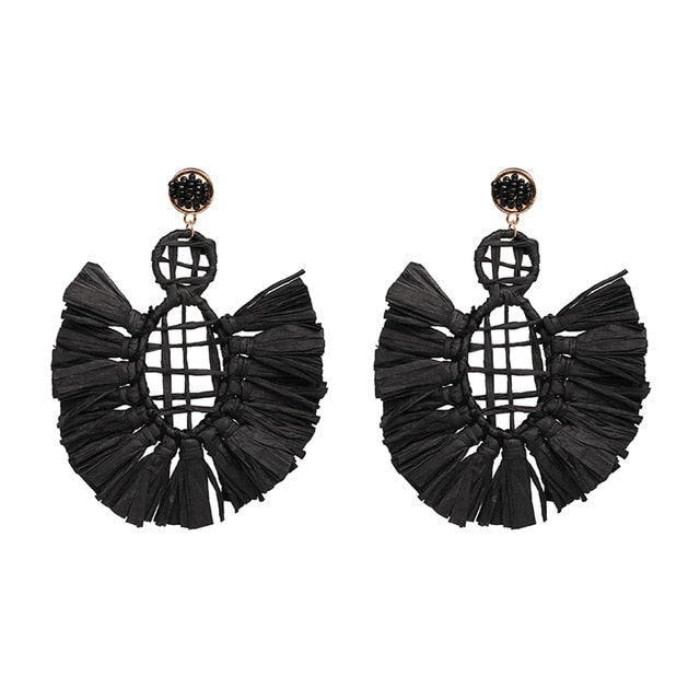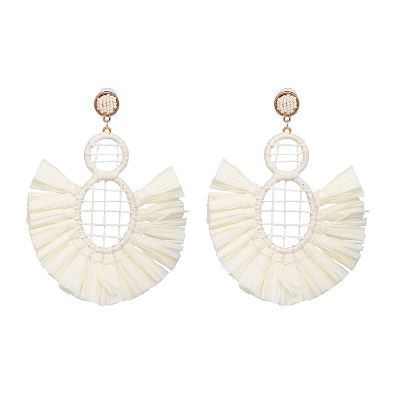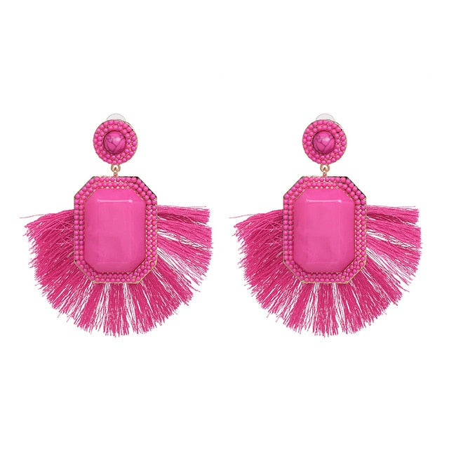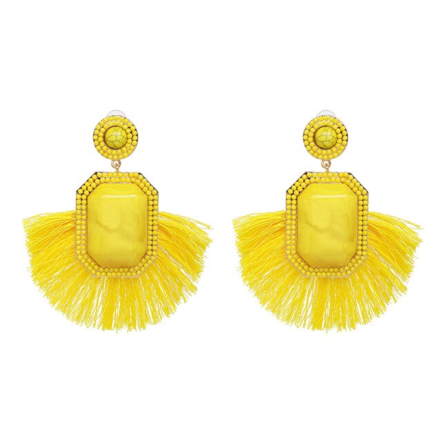 Round Tassel Drop Dangle Earring with Resin and Zinc Alloy Material