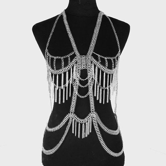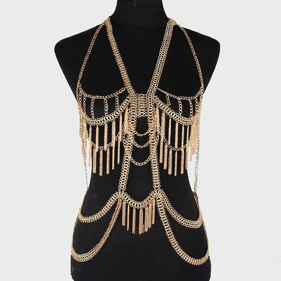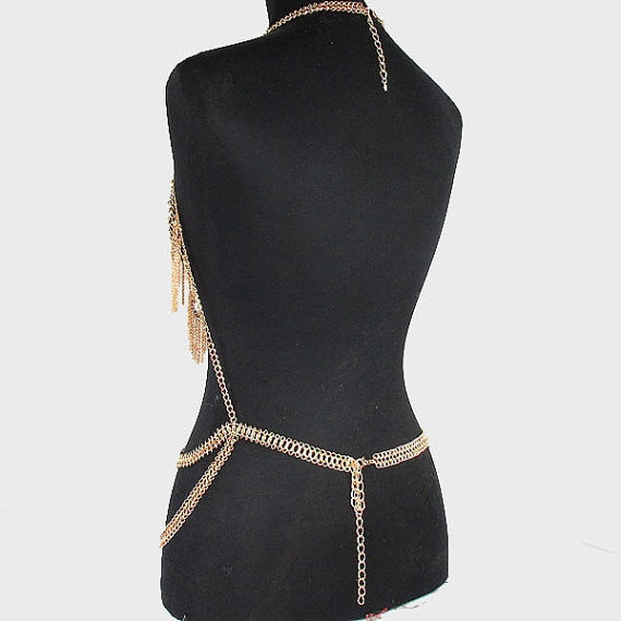 V-Neck Body Chain Necklace with Zinc Alloy Material