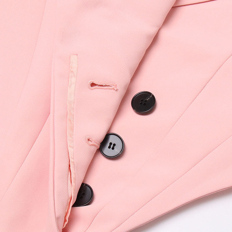 Sassy CutOut Peak Lapel Shoulder Pad Long Sleeve Blazer Bodysuit - Pink