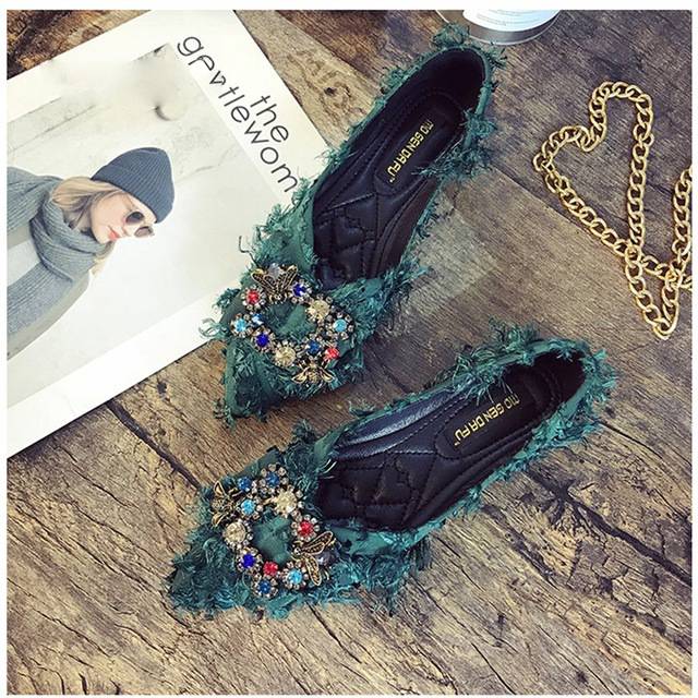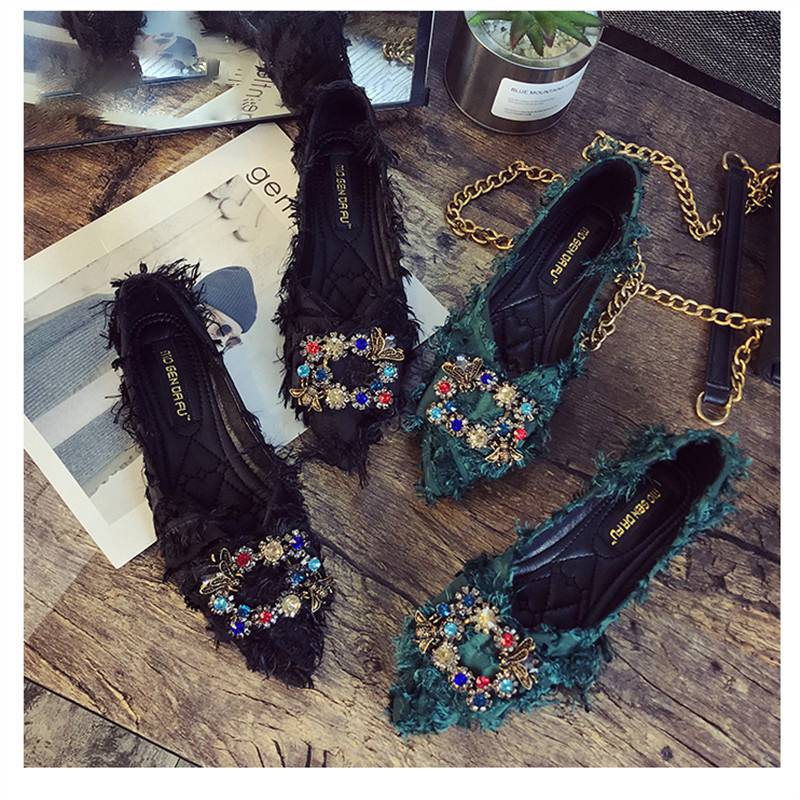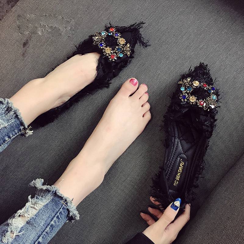 Casual Bow Rhinestone Pointed Toe Slip On Women Flat