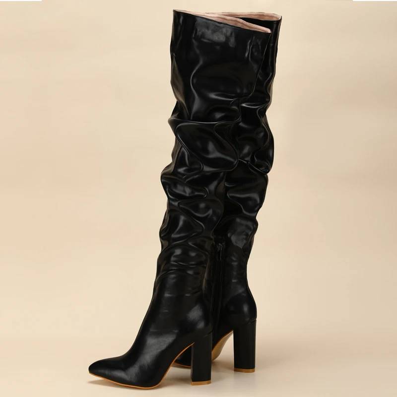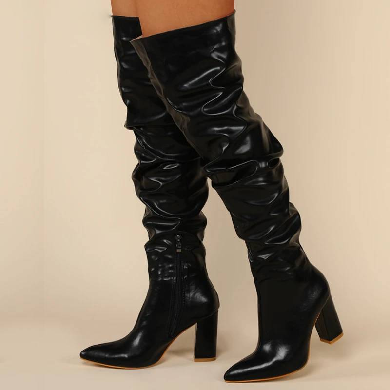Step into darkness with this boot! Made with rubber and PU materials, these boots are not only solid and durable but also stylish with a pointed toe design. Convenient zipper closure adds a touch of practicality. Own your unique style with these boots!