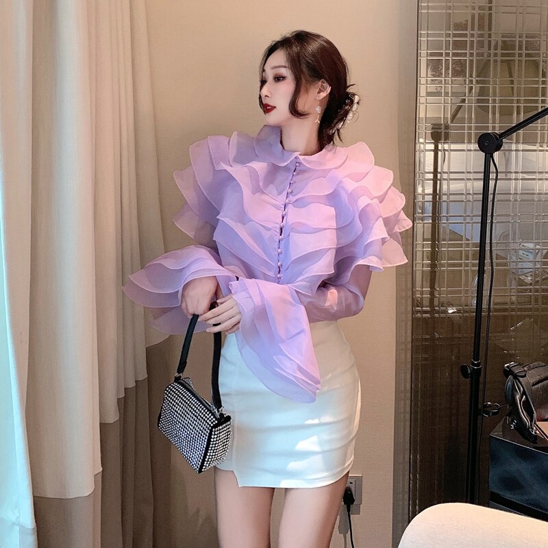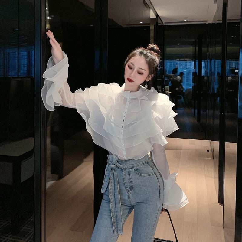 Present yourself in a bold statement with this patchwork shirt made of polyester. The slim fit and o-neck are combined with on-trend ruffle detailing for a look that is sure to leave an impression.