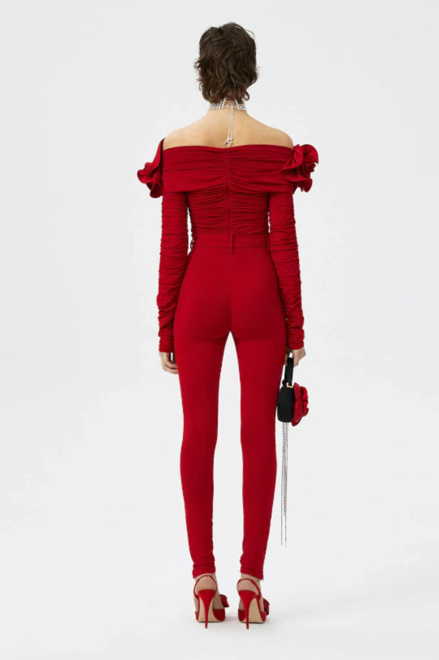 Floral Appliquéd Ruched Crop Top