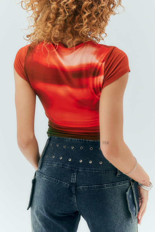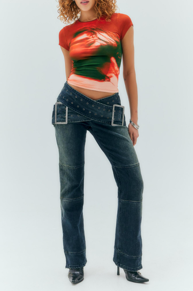 Make a statement with this graphic print baby tee from Jaded London. Cut from stretch jersey fabric in a simple cropped silhouette, Ft. Crew neck, short sleeves, and a high graphic on the chest.