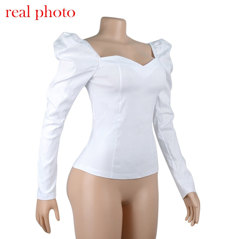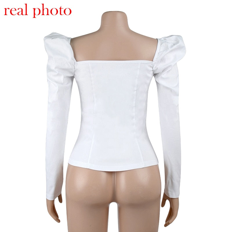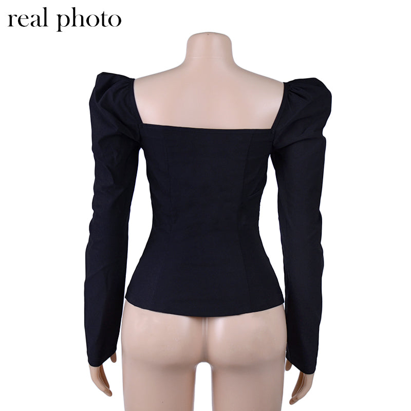 Vintage Style Collar Women Puff Sleeve Shirt
