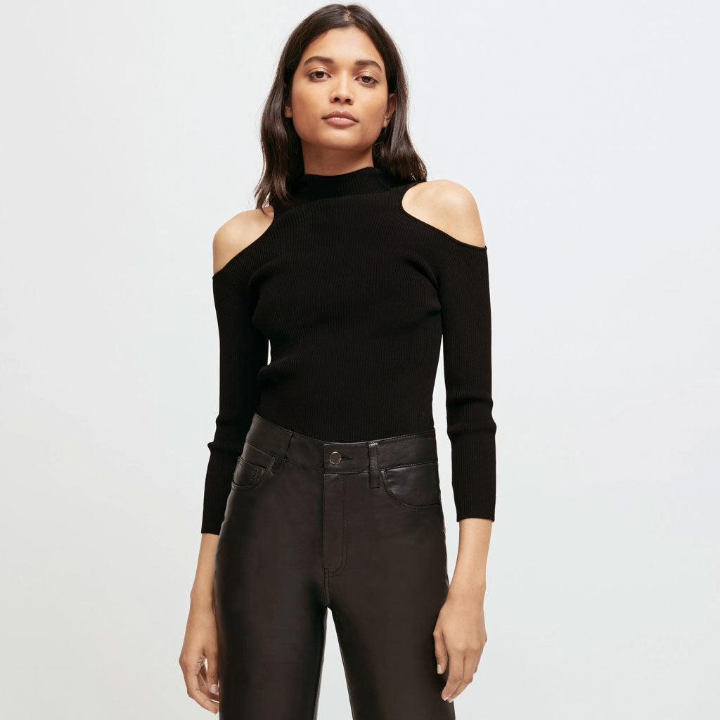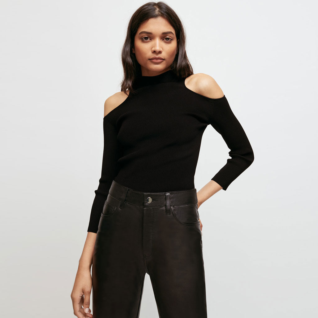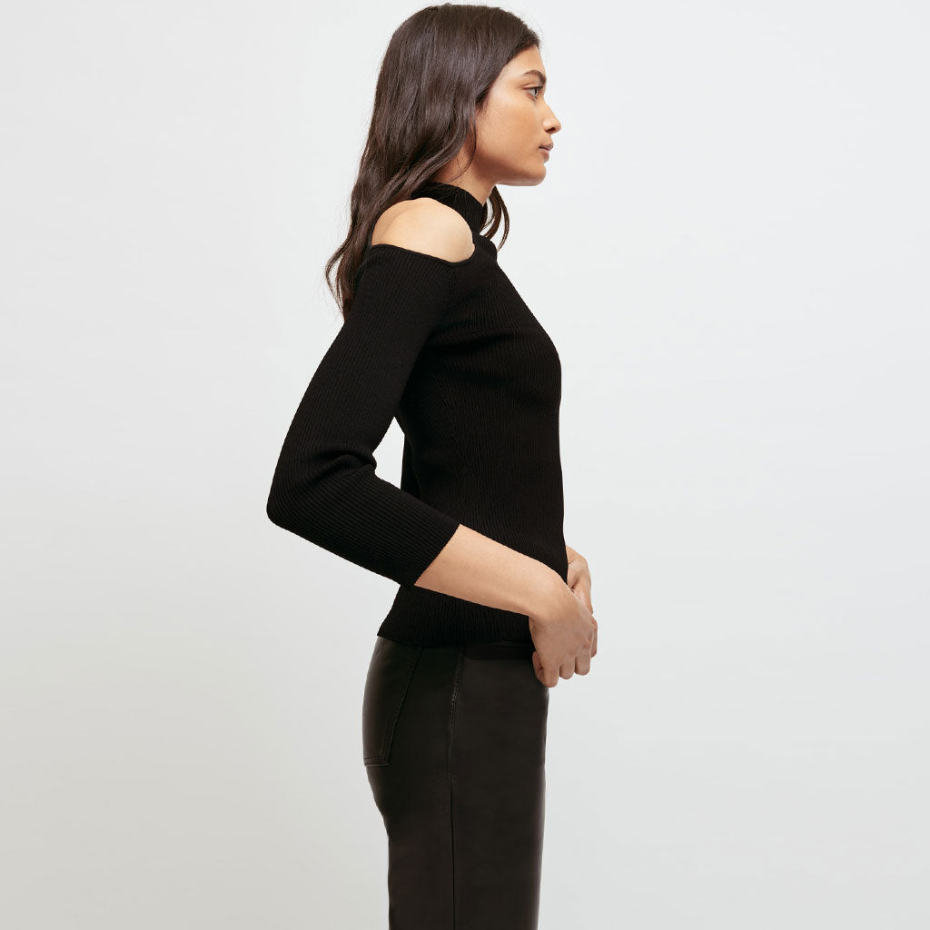 Three quarters sleeves with cut-outs at the shoulders. your new go-to sweet look is in here. Made of acrylic and polyester. this rib knit top is a great transitional outfit that takes you from winter to spring smoothly. It also features a mock neckline in a slip-on styling and a stretchy & sleek frame. Wear it with everything and bring it everywhere. Our designer clothes collection also contains many luxury pullover sweaters for women's winter closet. No hesitate to shop now!