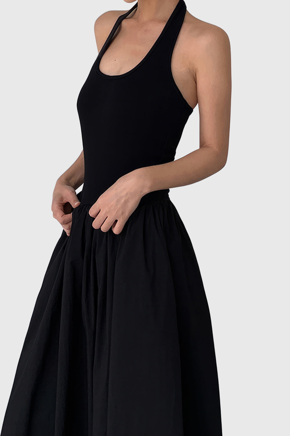 Midi Dress with Halter Neck - Black