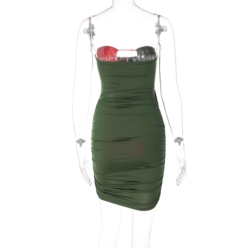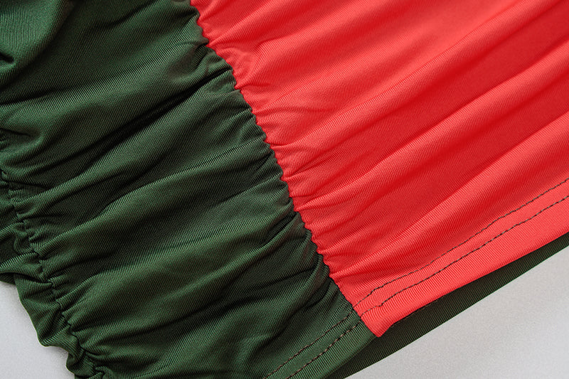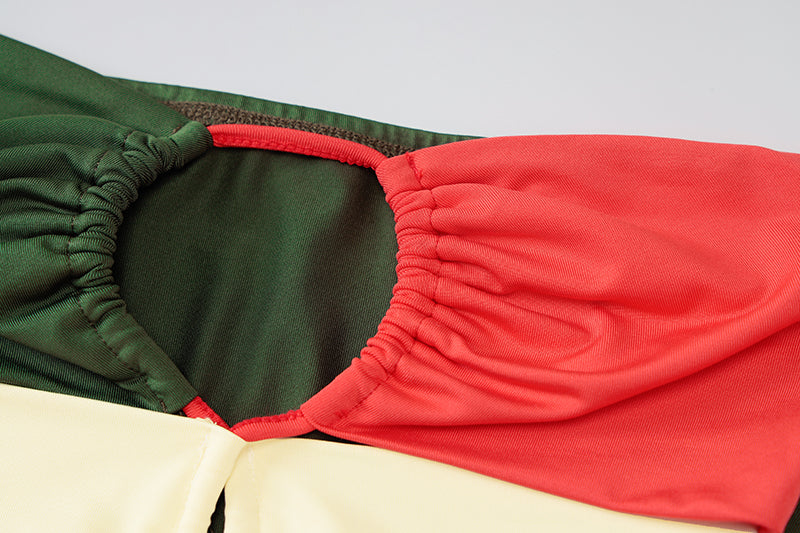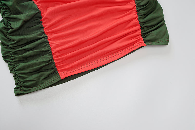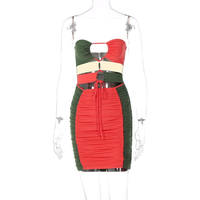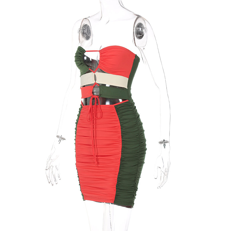 Sleeveless Polyester Spandex Mini Dress with Solid Contrast Patchwork, Hollow Out and Ruches Style