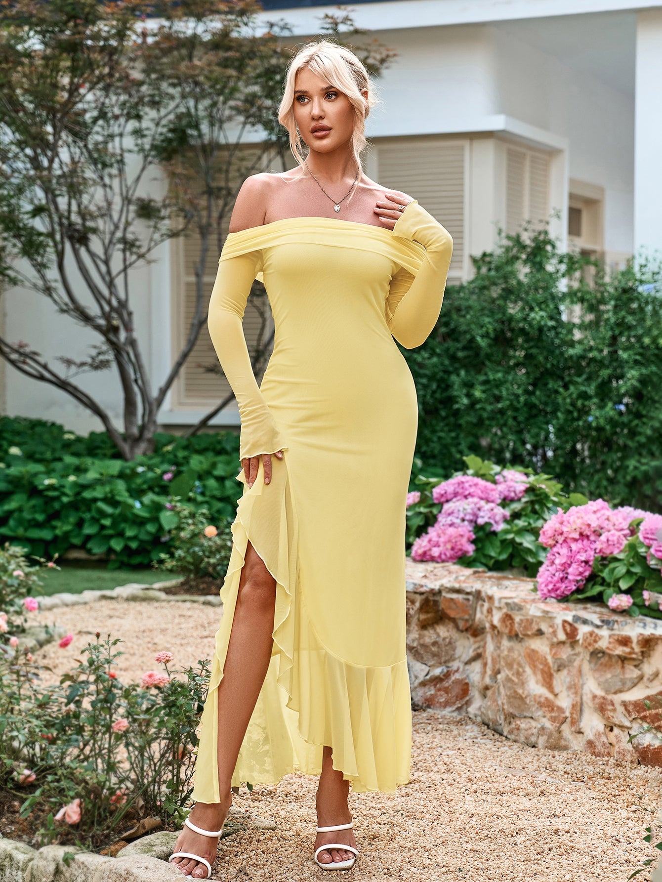 Off Shoulder Cut Out Asymmetrical Ruffle Hem Dress