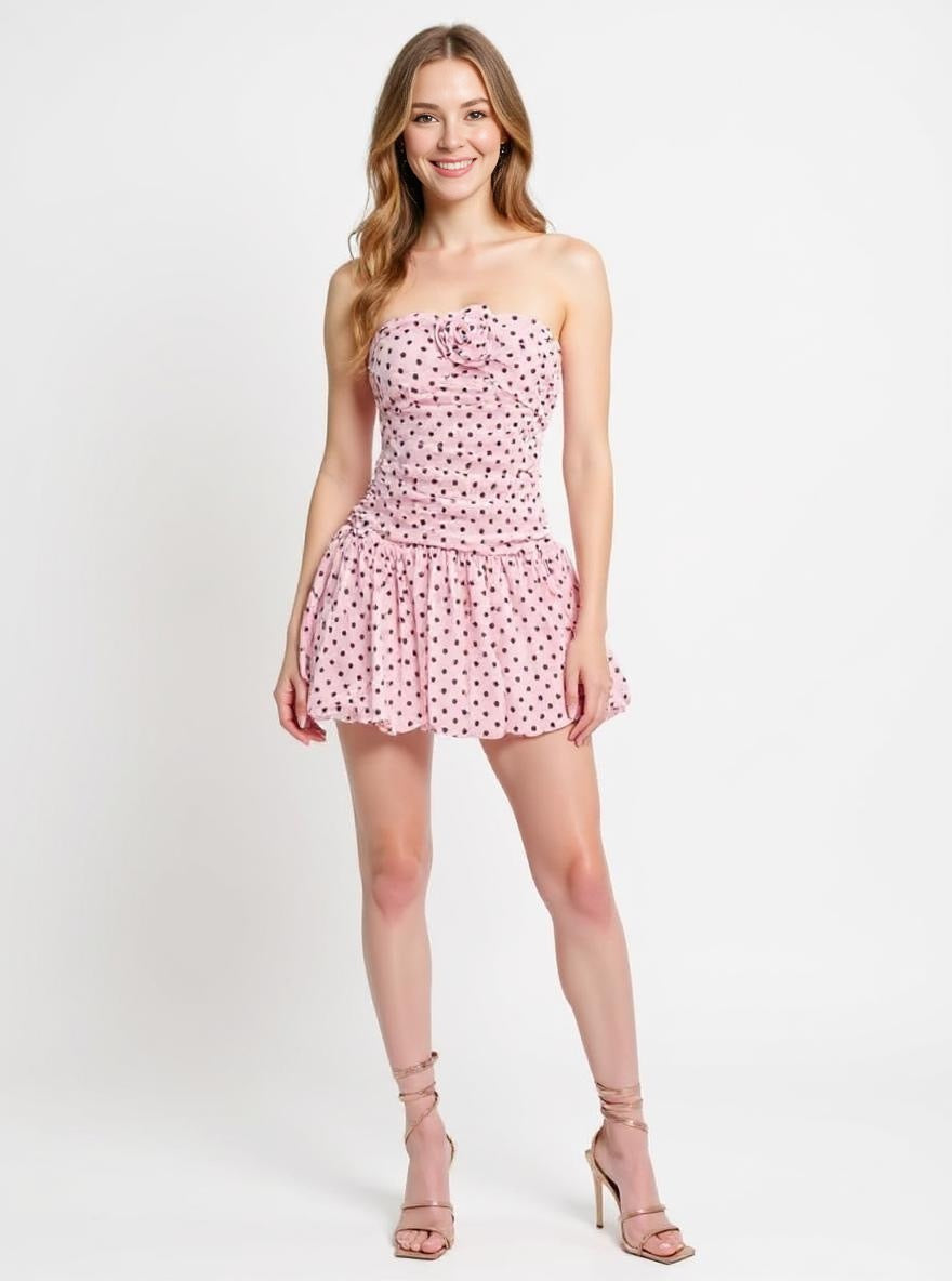 Step into fun and flirty style with this playful pink strapless dress adorned with cheerful polka dots. Its flattering silhouette lets you show off your shoulders while keeping things light and breezy. Perfect for sunny days or lively evenings, this dress adds a splash of joy to any occasion.
