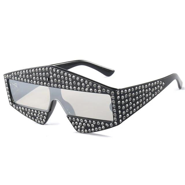 Plastic Frame UV400 Polycarbonate Lens Unique Sunglasses with Rhinestone Decoration