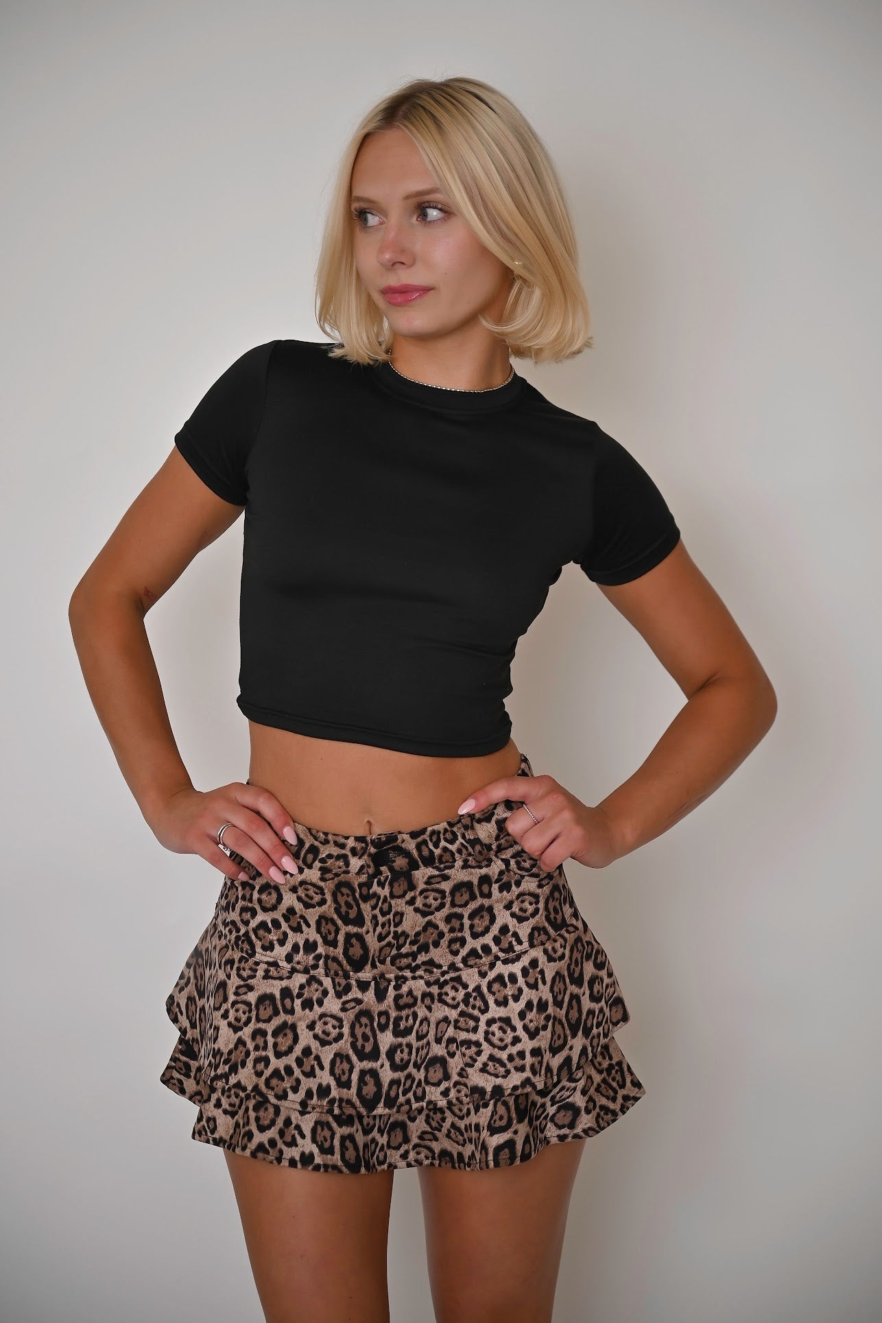 Upgrade your basics with the Short Sleeve Basic T-Shirt in essential black and white. Featuring a snug fit and high neckline for a sleek look, this versatile piece is perfect for layering or solo wear. A blend of comfort and style, it's a must-have for any wardrobe.