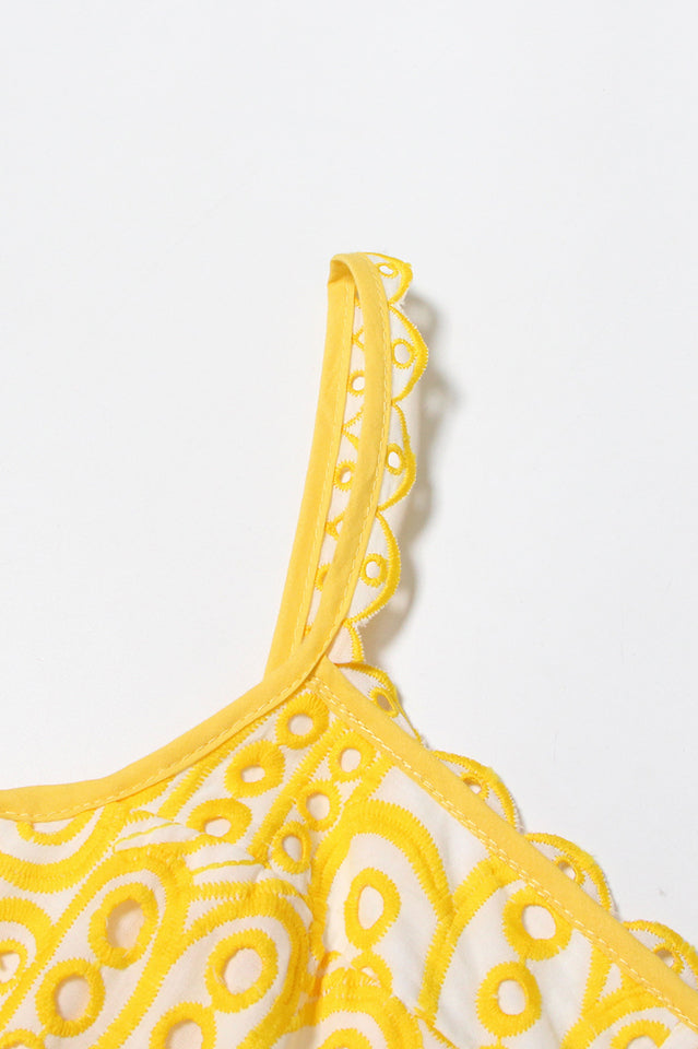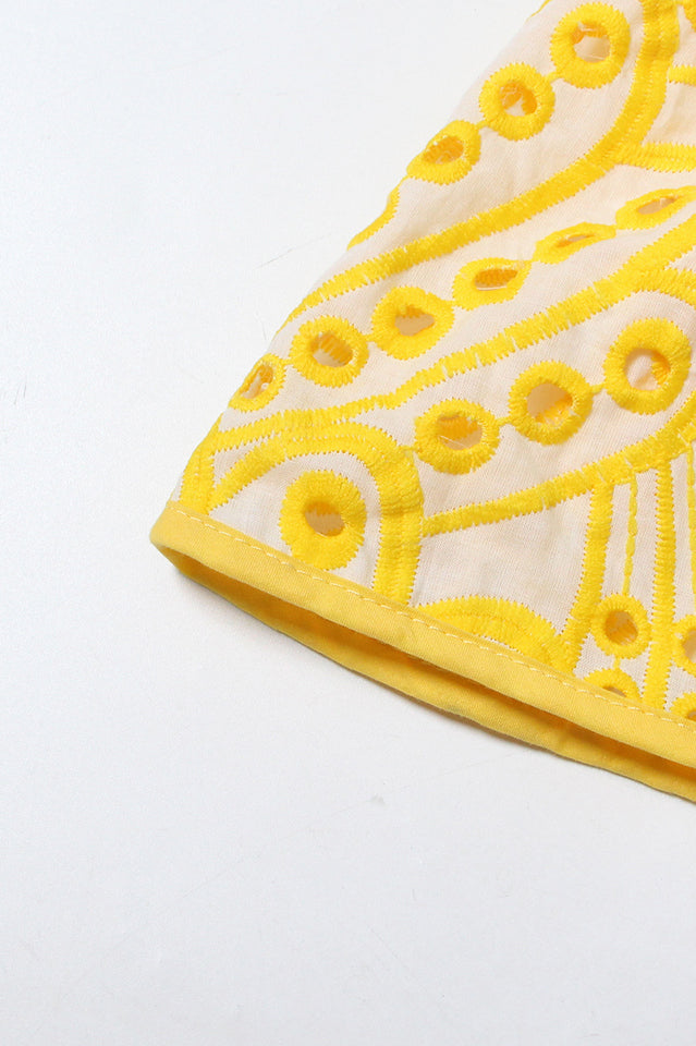 The pretty balconette neckline and the corseted bodice fit perfectly. falling into a beautiful asymmetrical skirt in the same openwork fabric.Combine it with some espadrilles and some striking jewelry.