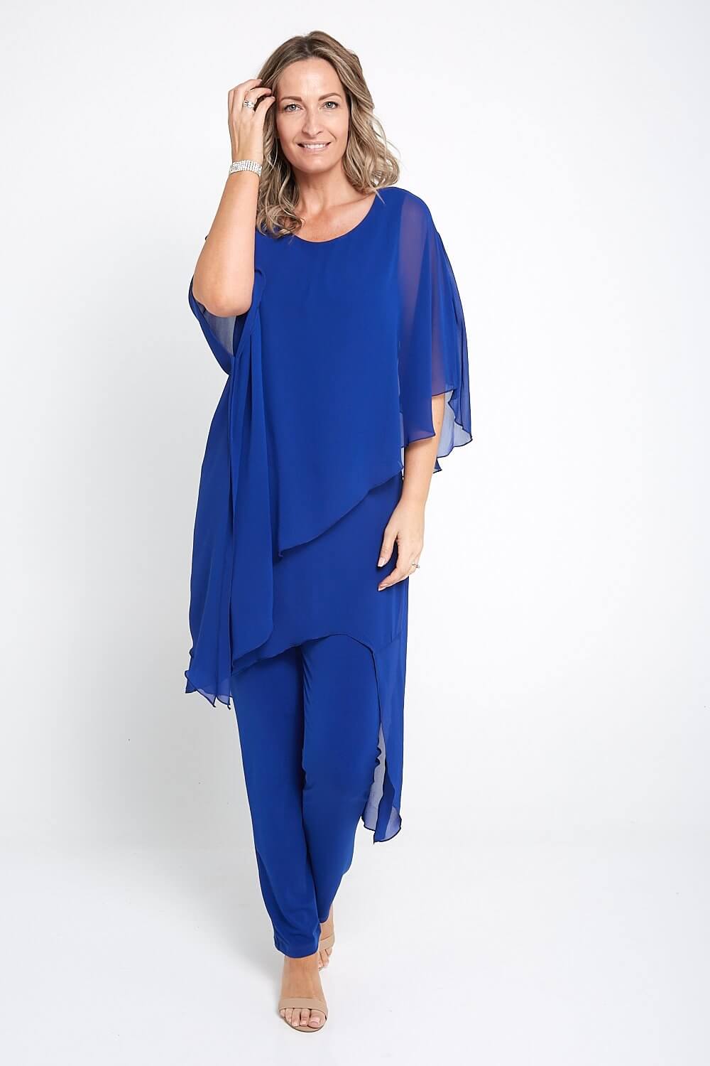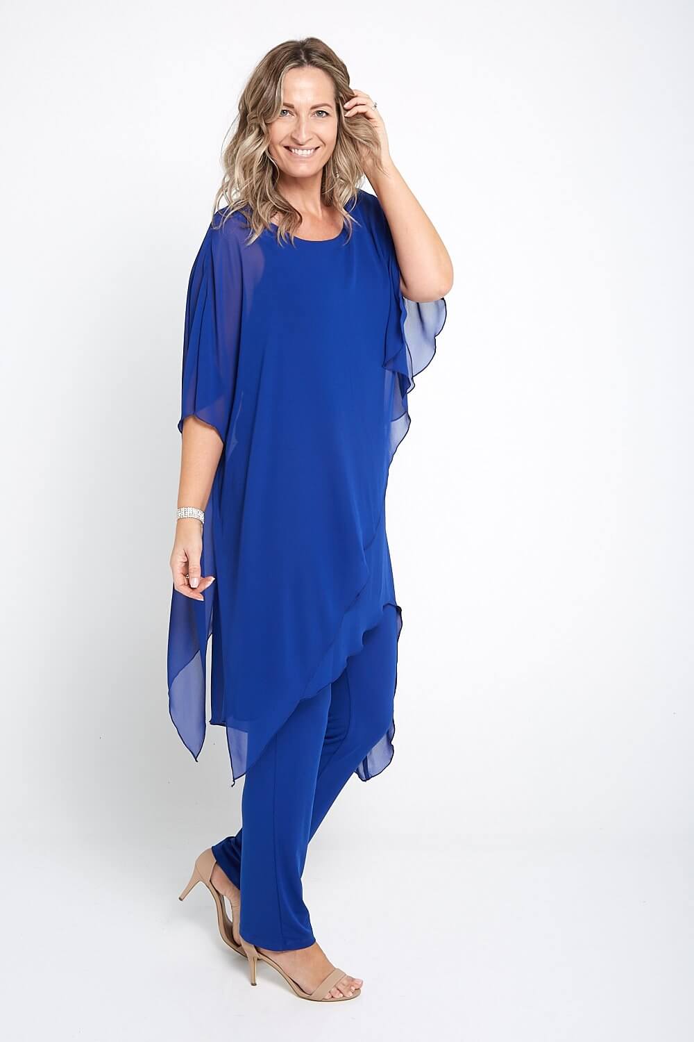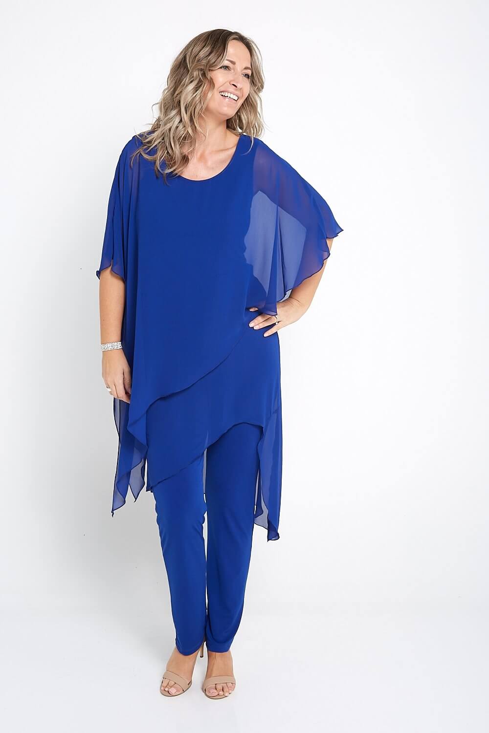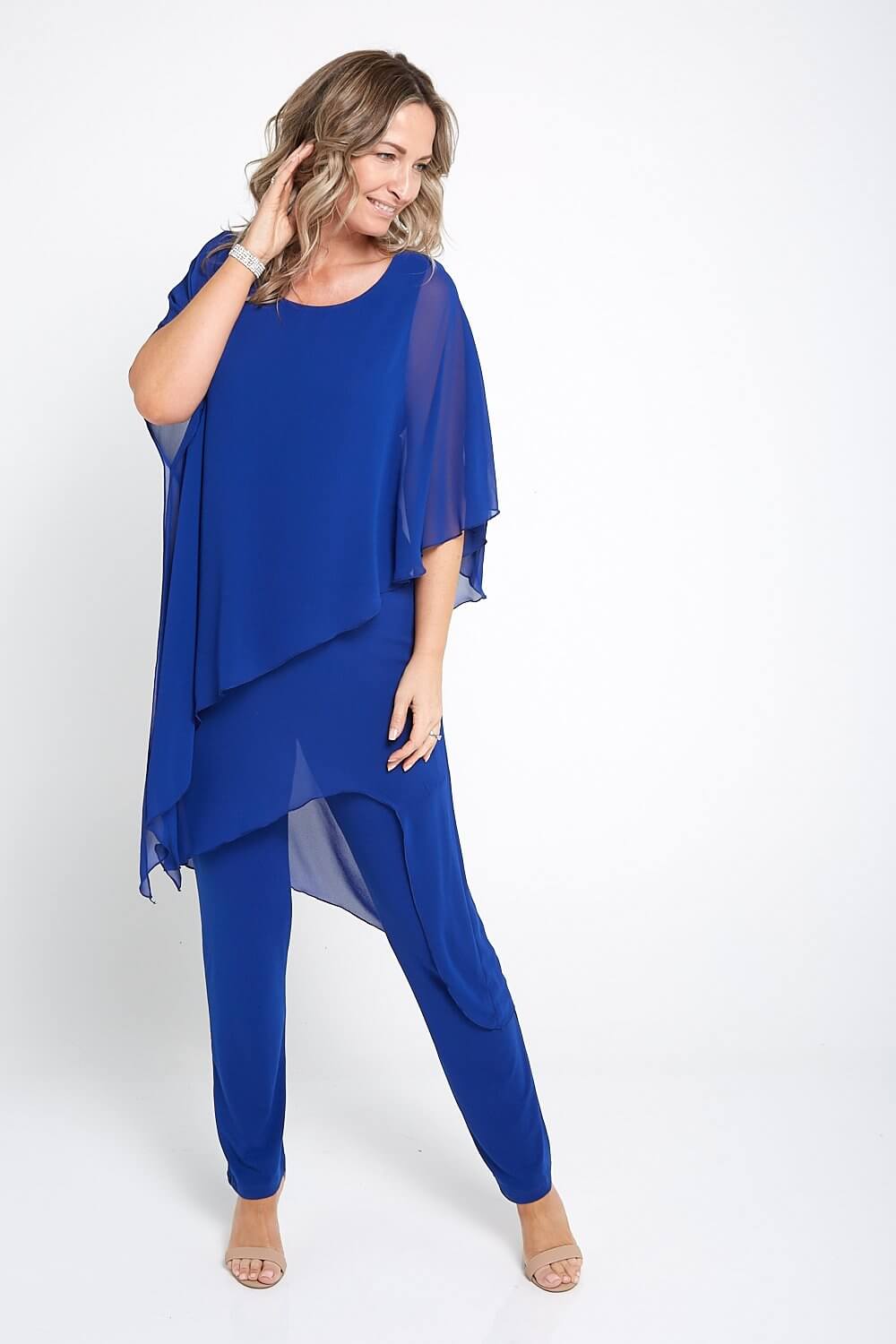 If you've hesitated over buying a jumpsuit in the past, this clever design will allay all of your worries. Chic and contemporary, the Tilly Jumpsuit combines the comfort of stretch jersey with the elegance of an asymmetric chiffon overlay. The all-in-one jumpsuit has a sleeveless scoop neck with and elasticised waist and invisible zipper. The matching sheer overlay drapes beautifully over the body, giving you complete jumpsuit confidence. Make an entrance in gorgeous royal blue!
