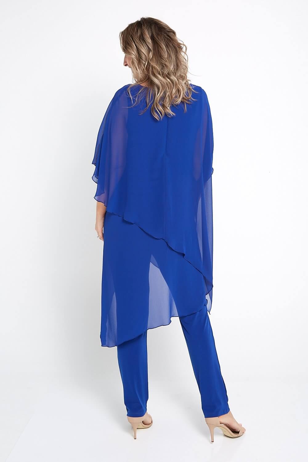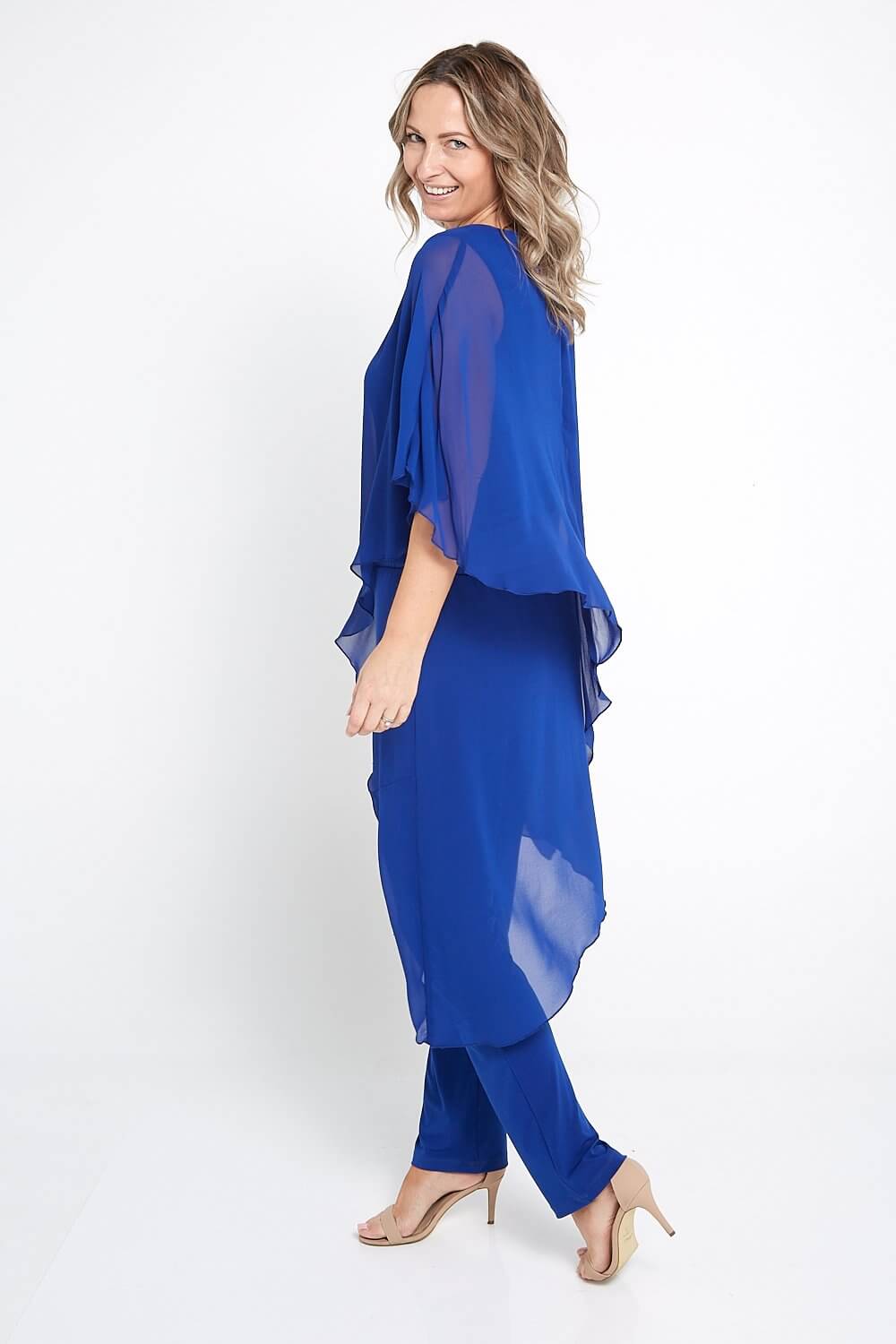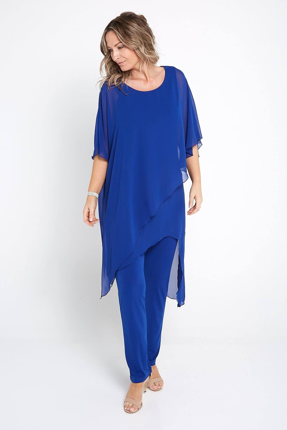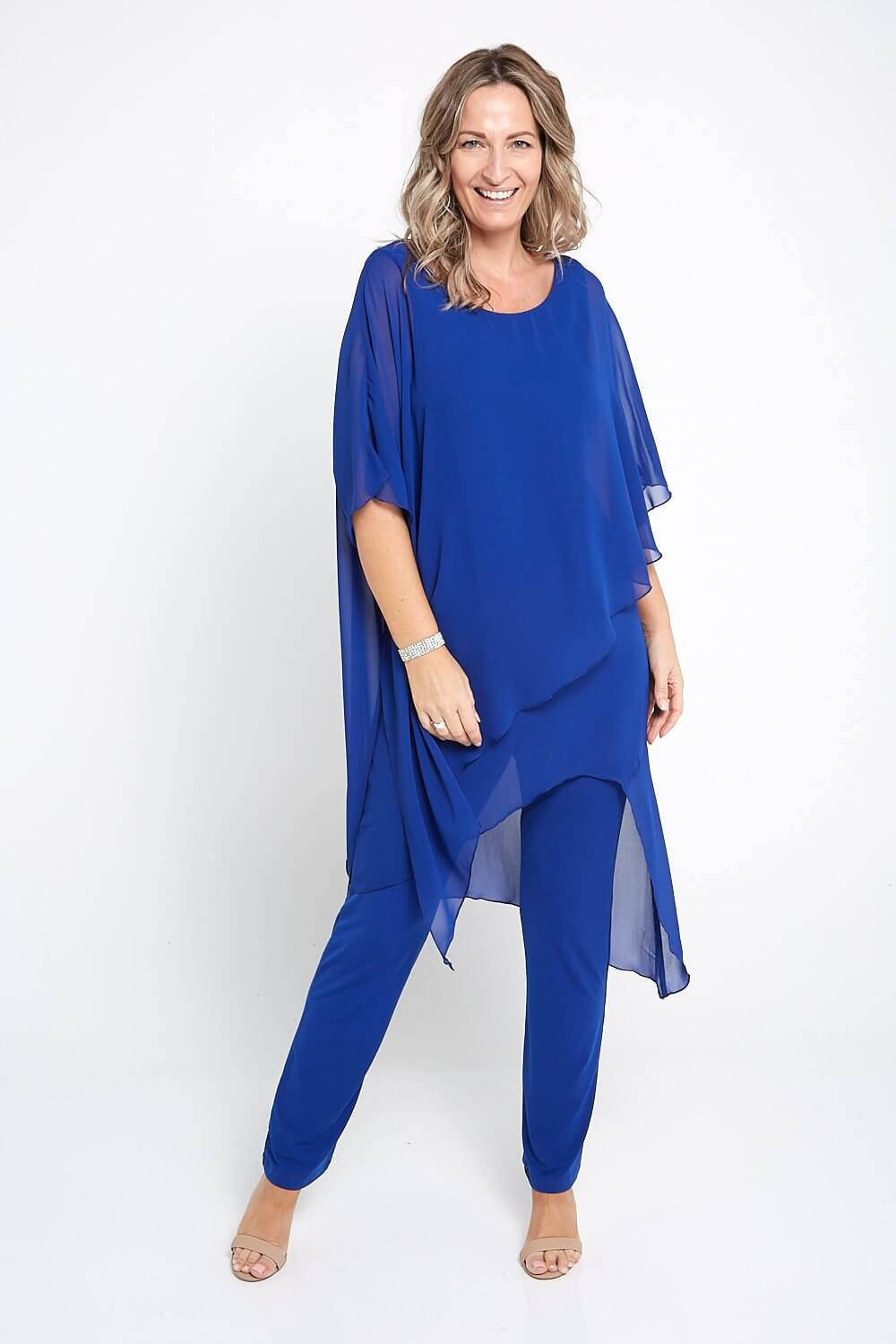 If you've hesitated over buying a jumpsuit in the past, this clever design will allay all of your worries. Chic and contemporary, the Tilly Jumpsuit combines the comfort of stretch jersey with the elegance of an asymmetric chiffon overlay. The all-in-one jumpsuit has a sleeveless scoop neck with and elasticised waist and invisible zipper. The matching sheer overlay drapes beautifully over the body, giving you complete jumpsuit confidence. Make an entrance in gorgeous royal blue!