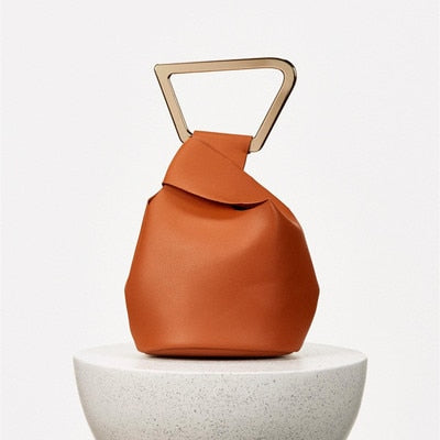 PU Leather Top Handle Bag with Unique Simple Knot Closure