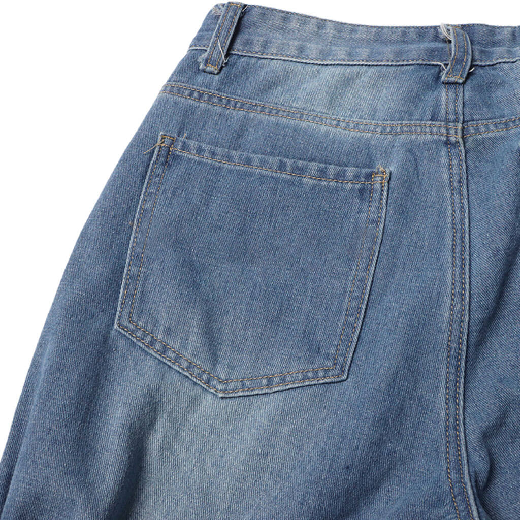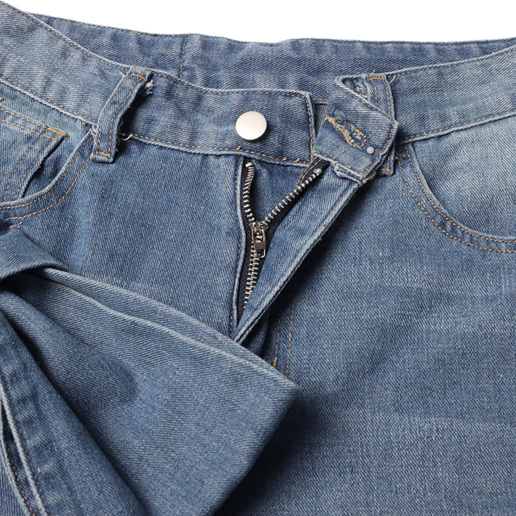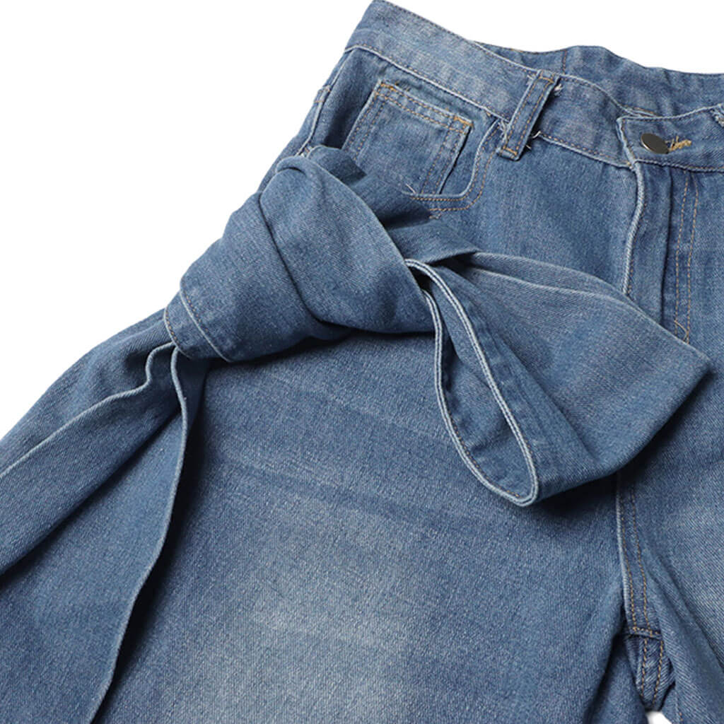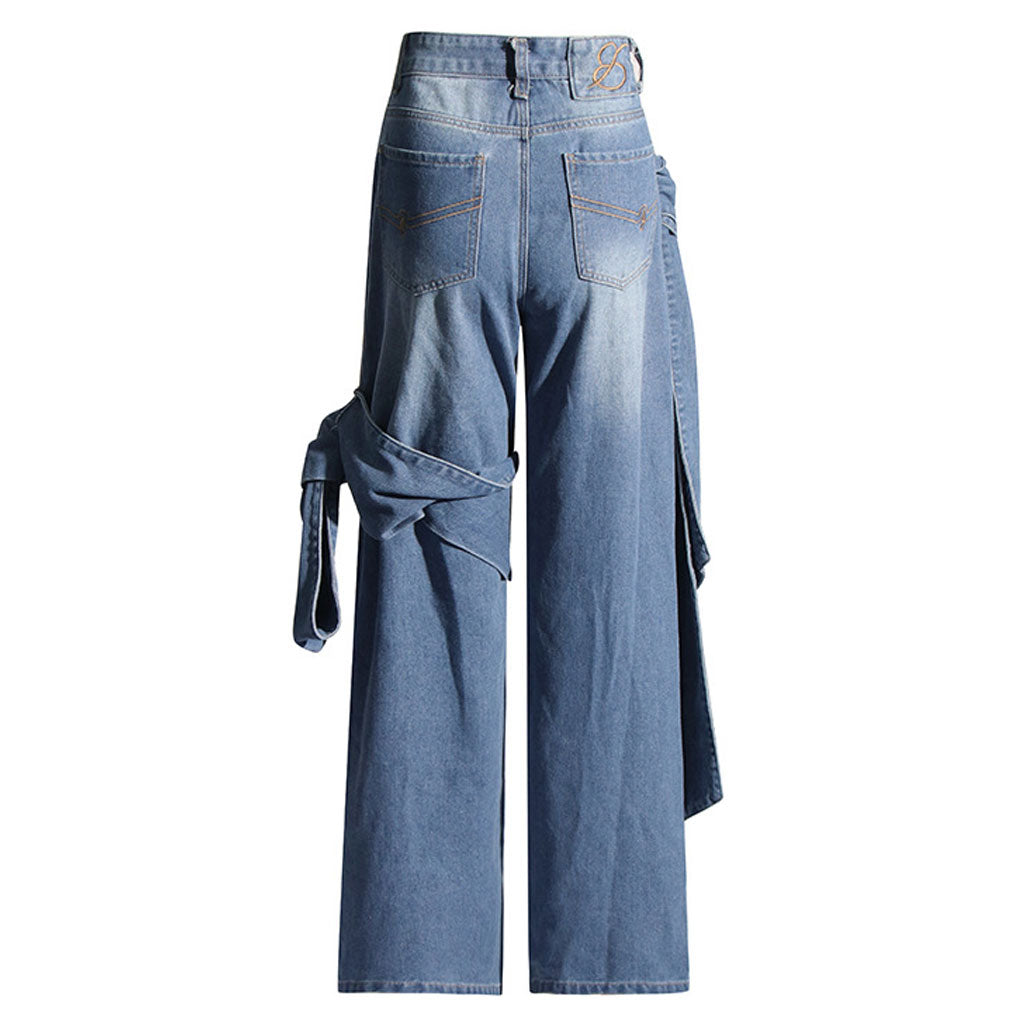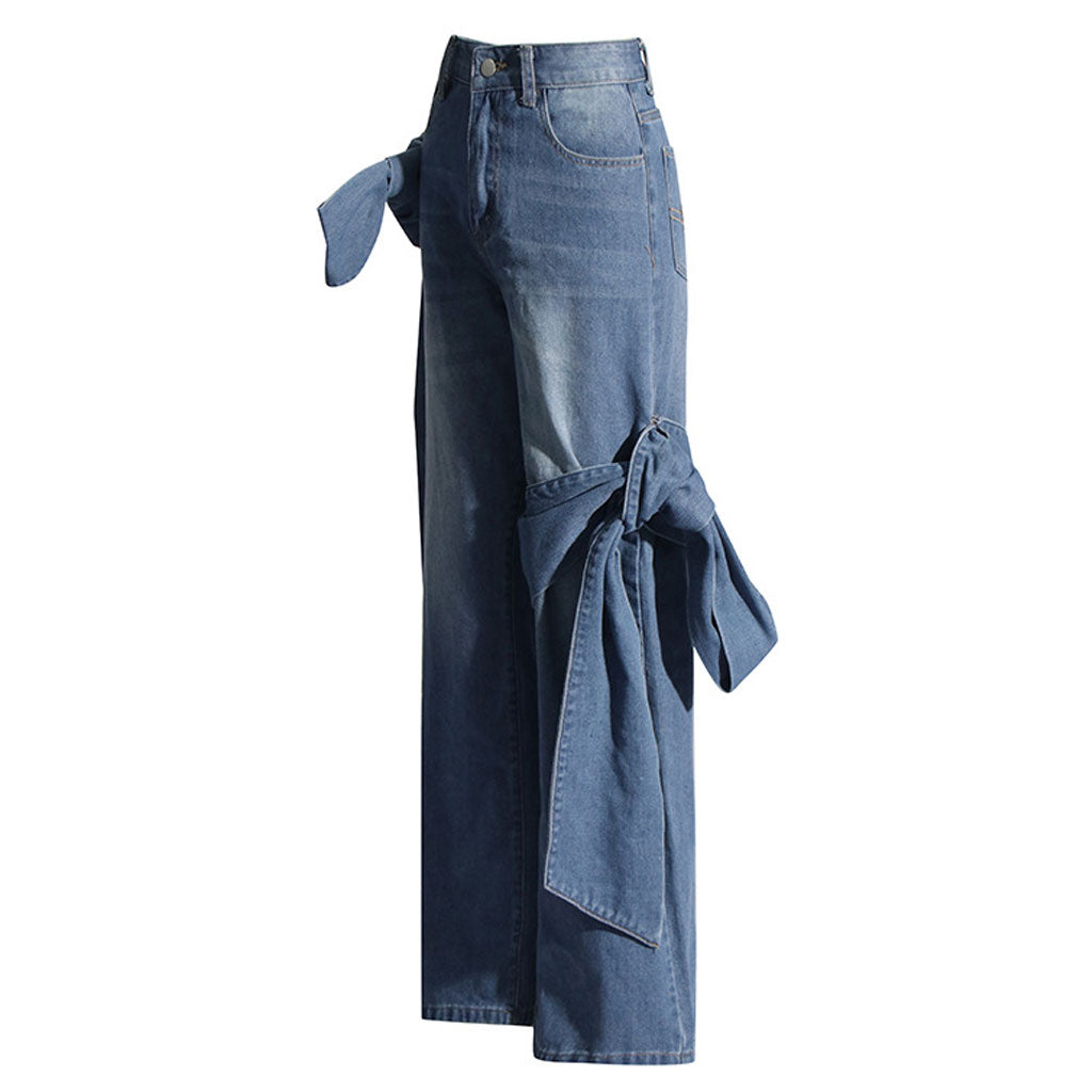 Asymmetrical Bowknot Whisker Detail High Waist Straight Leg Jeans