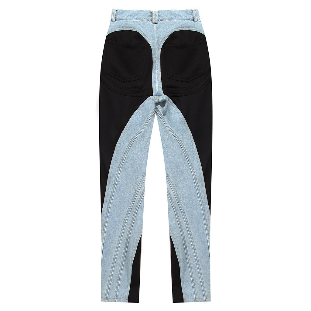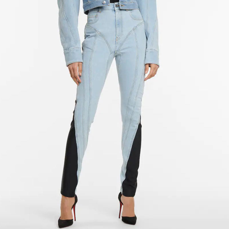 Edgy Two Tone Twisted Seam High Waist Skinny Spliced Jeans