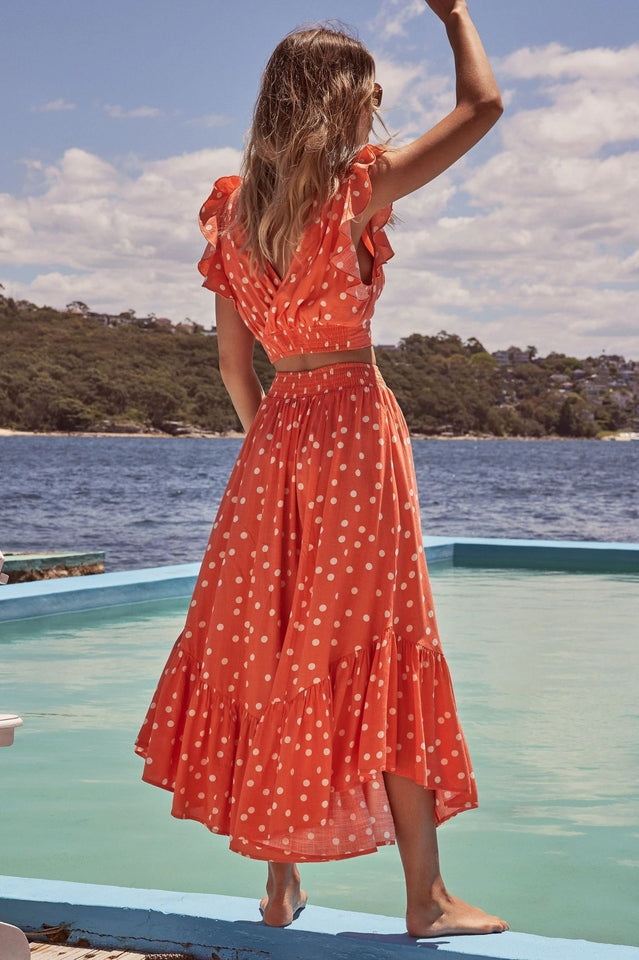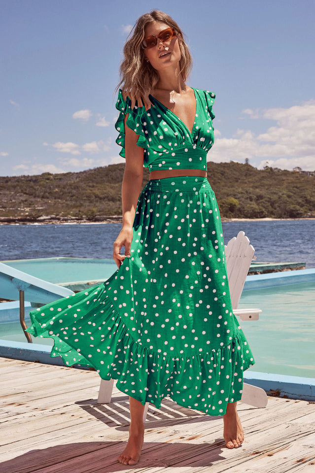 Polka Dot Ruffle Tank Top + Midi Skirt Set