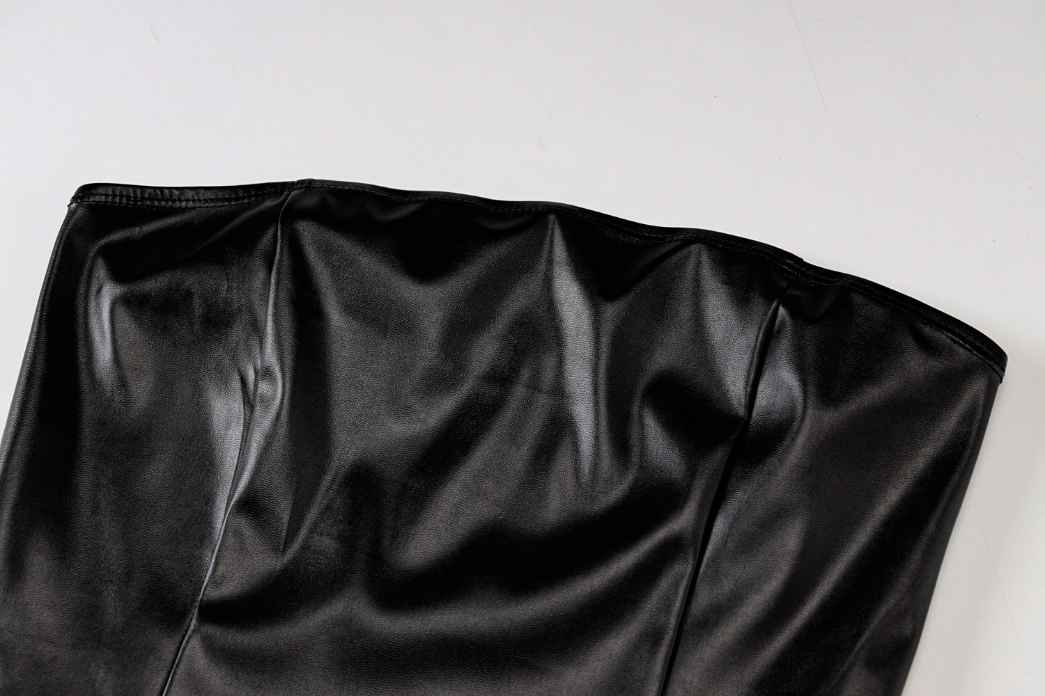 This dress is perfect for a date night or for a casual day. It is made of PU leather and has a black color. The straps are strapless and the back of the dress is open.