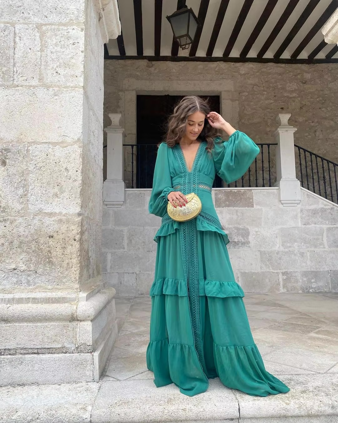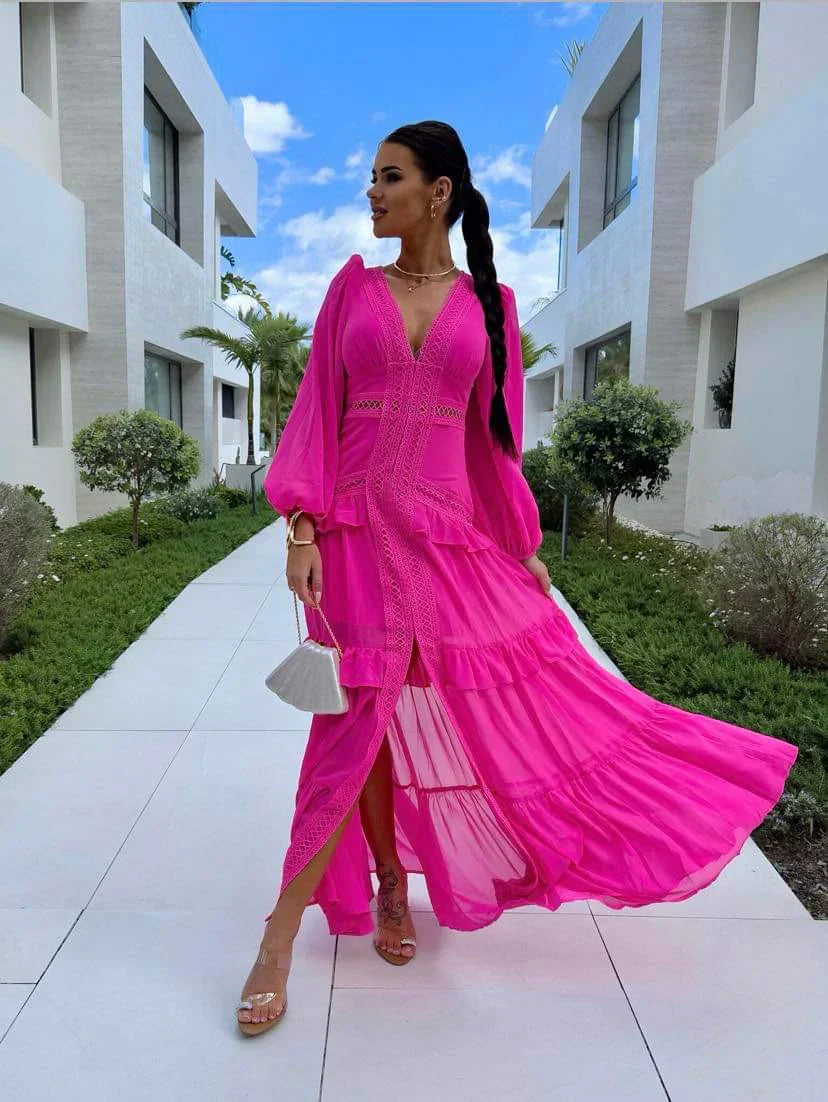 Tiered Maxi Length with Lace Inserts: Creates graceful movement and elevates the overall style with intricate lace detailing.