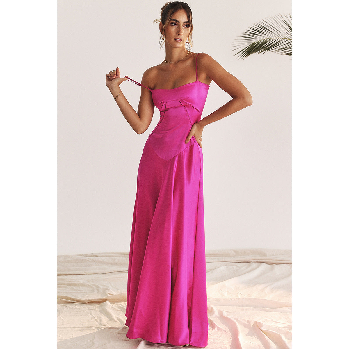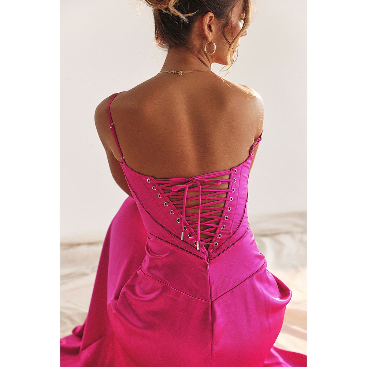 Anabella Black Lace Up Maxi Dress - Rose Red