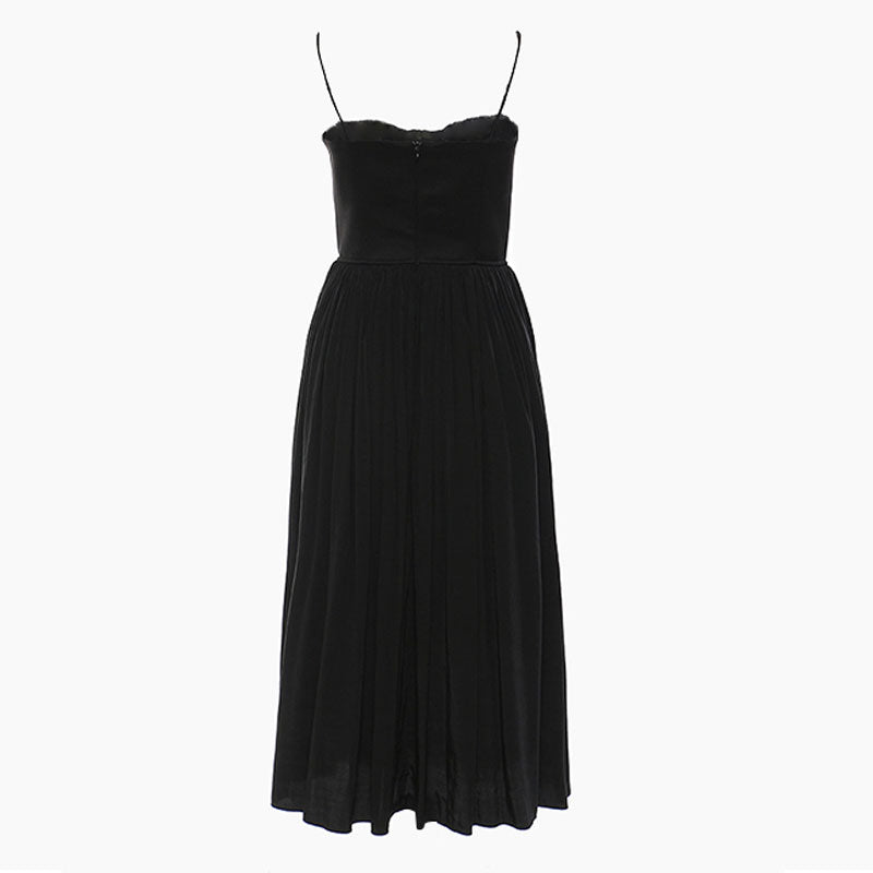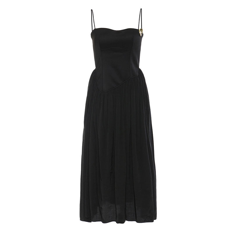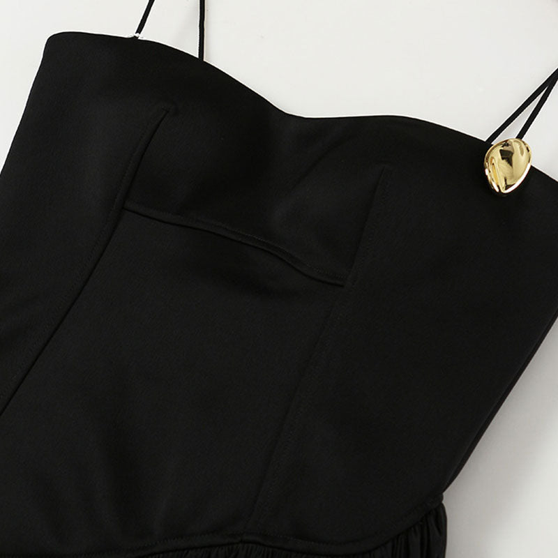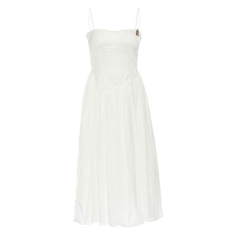 Classy Sweetheart Metallic Accent Gathered Drop Waist Slip Midi Dress