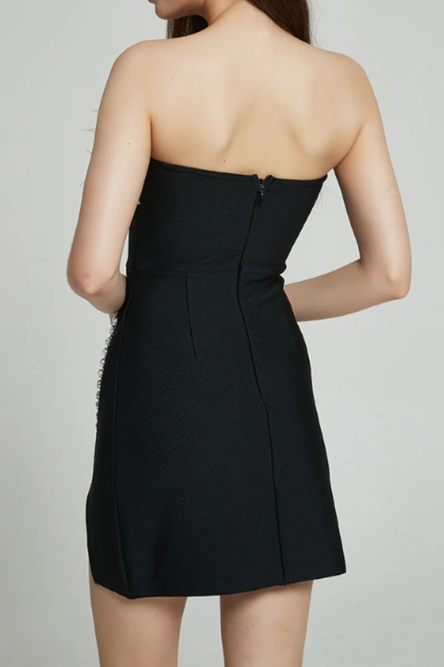 Feather Trimmed Pink Crepe Mini Dress