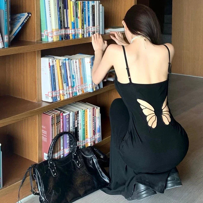 This stunning maxi dress will fill you with love and confidence! Its figure-hugging silhouette accentuates your curves, while the elegant butterfly-shaped cut-out on the back adds a touch of whimsy. Perfect for a night out or special occasion, its polyester and spandex material will keep you comfortable all evening long.