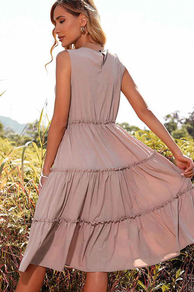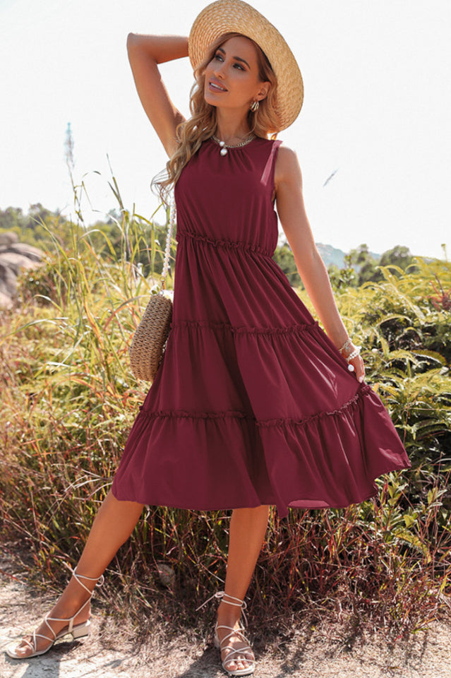 Keyhole Back Ruffle Hem Dress