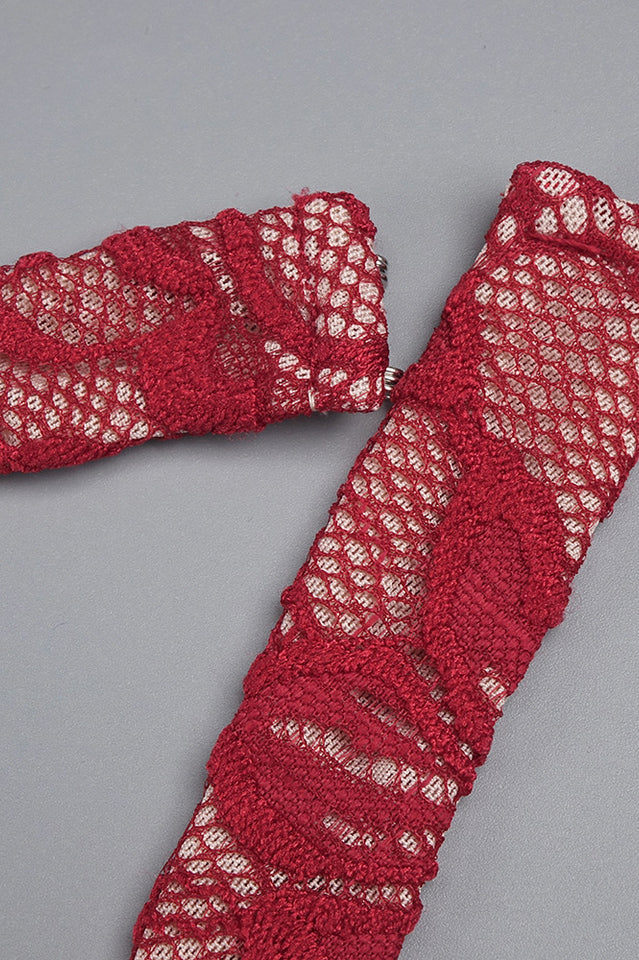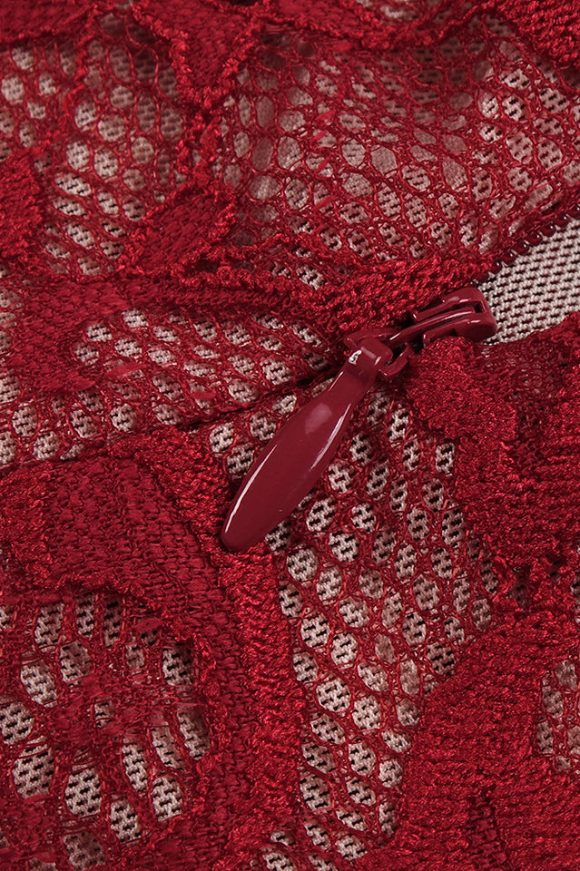 Marjorie Red Rose Lace Halter Maxi Dress
